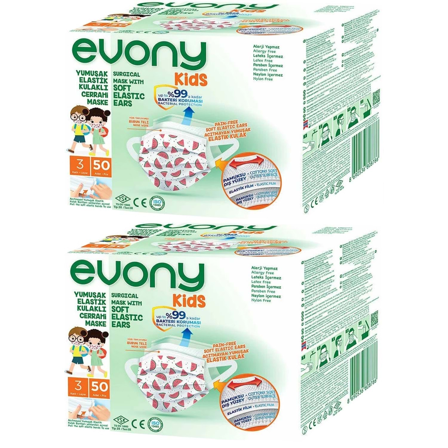 Evony 3 Katlı Filtreli Burun Telli Cerrahi Maske (Kids Çoçuklar İçin) 100 Lü Set (Desenli)