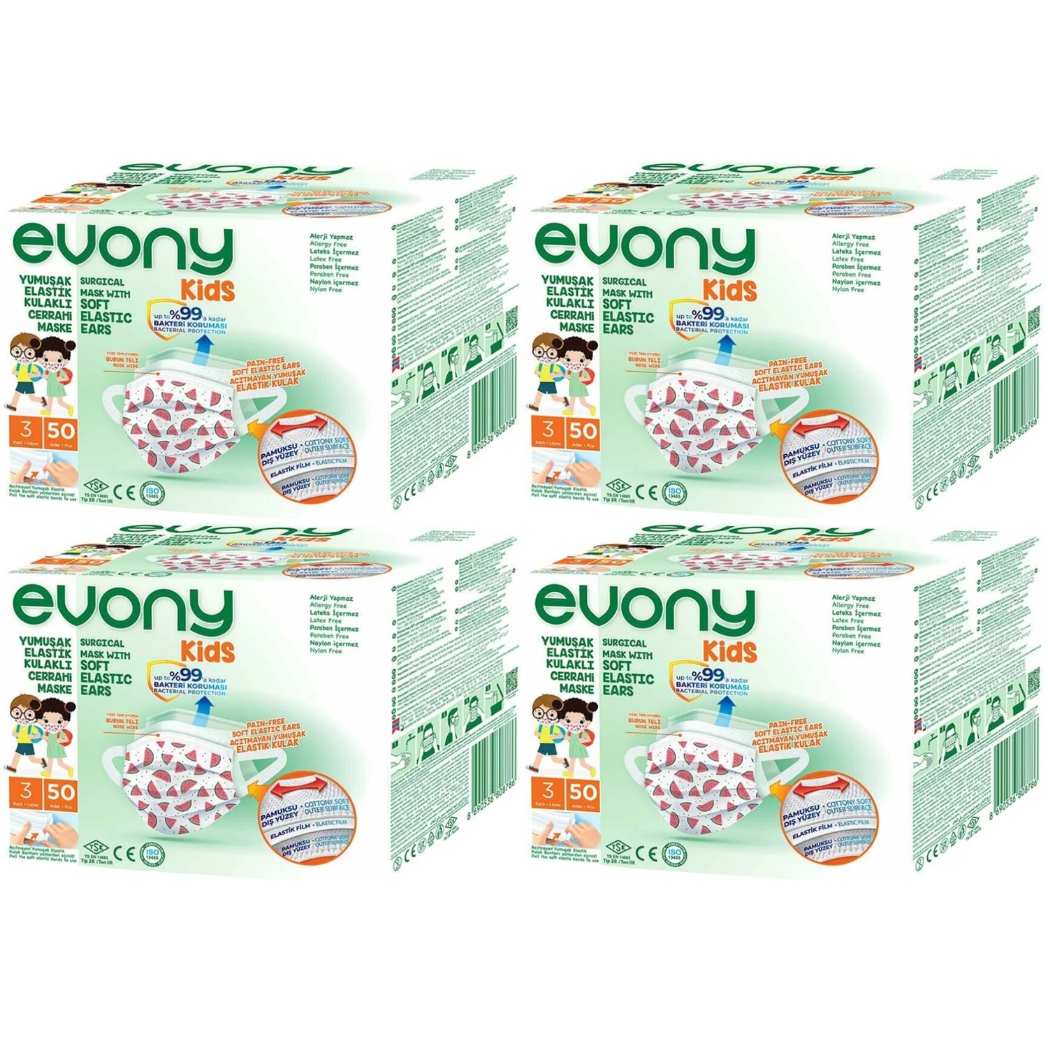 Evony 3 Katlı Filtreli Burun Telli Cerrahi Maske (Kids Çoçuklar İçin) 200 Lü Set (Desenli)