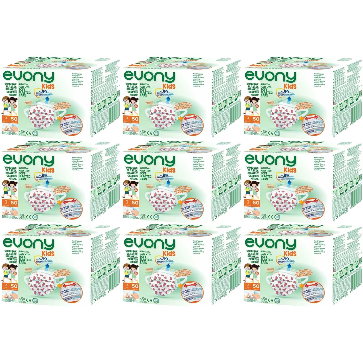 Evony 3 Katlı Filtreli Burun Telli Cerrahi Maske (Kids Çoçuklar İçin) 450 Li Set (Desenli)