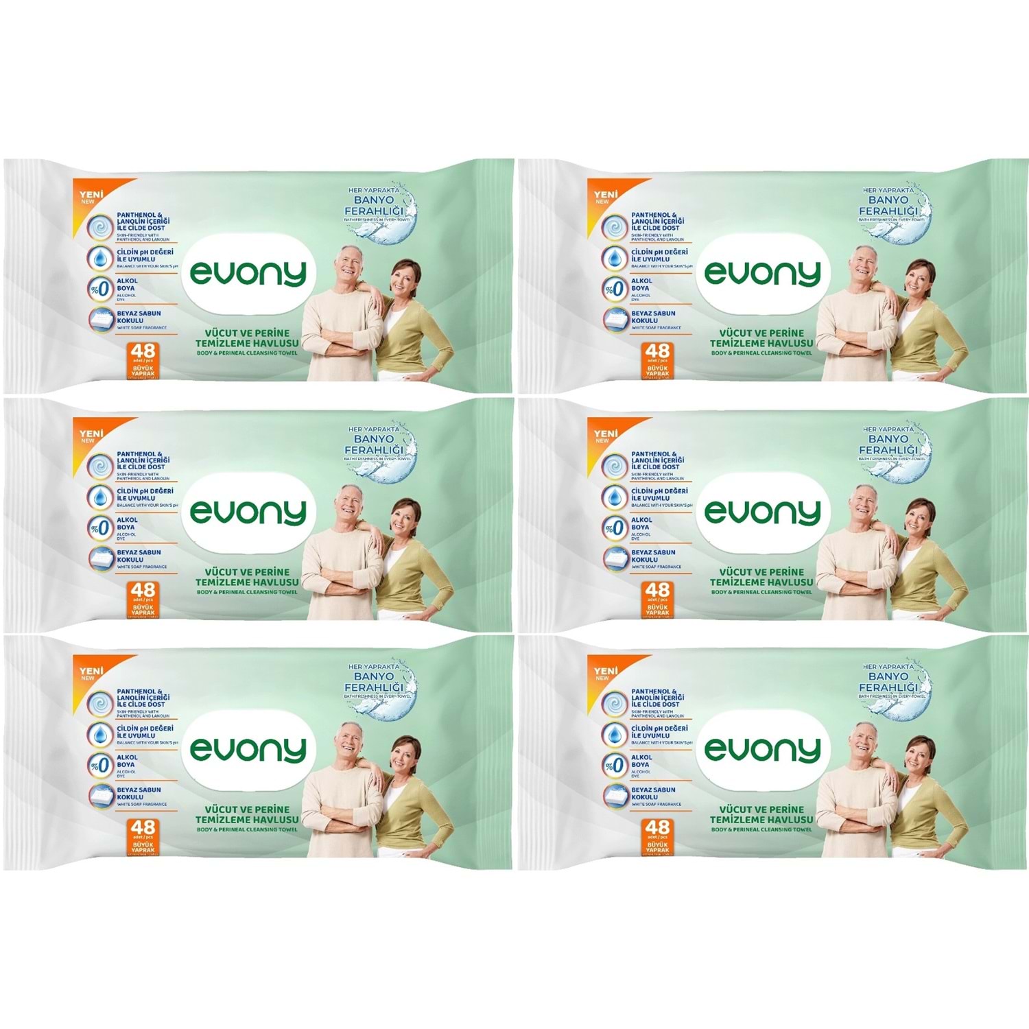 Evony Hasta Vücut Perine Temizleme Islak Mendil Havlu 48 Yaprak XL Banyo Ferahlığı (6 Lı Set)