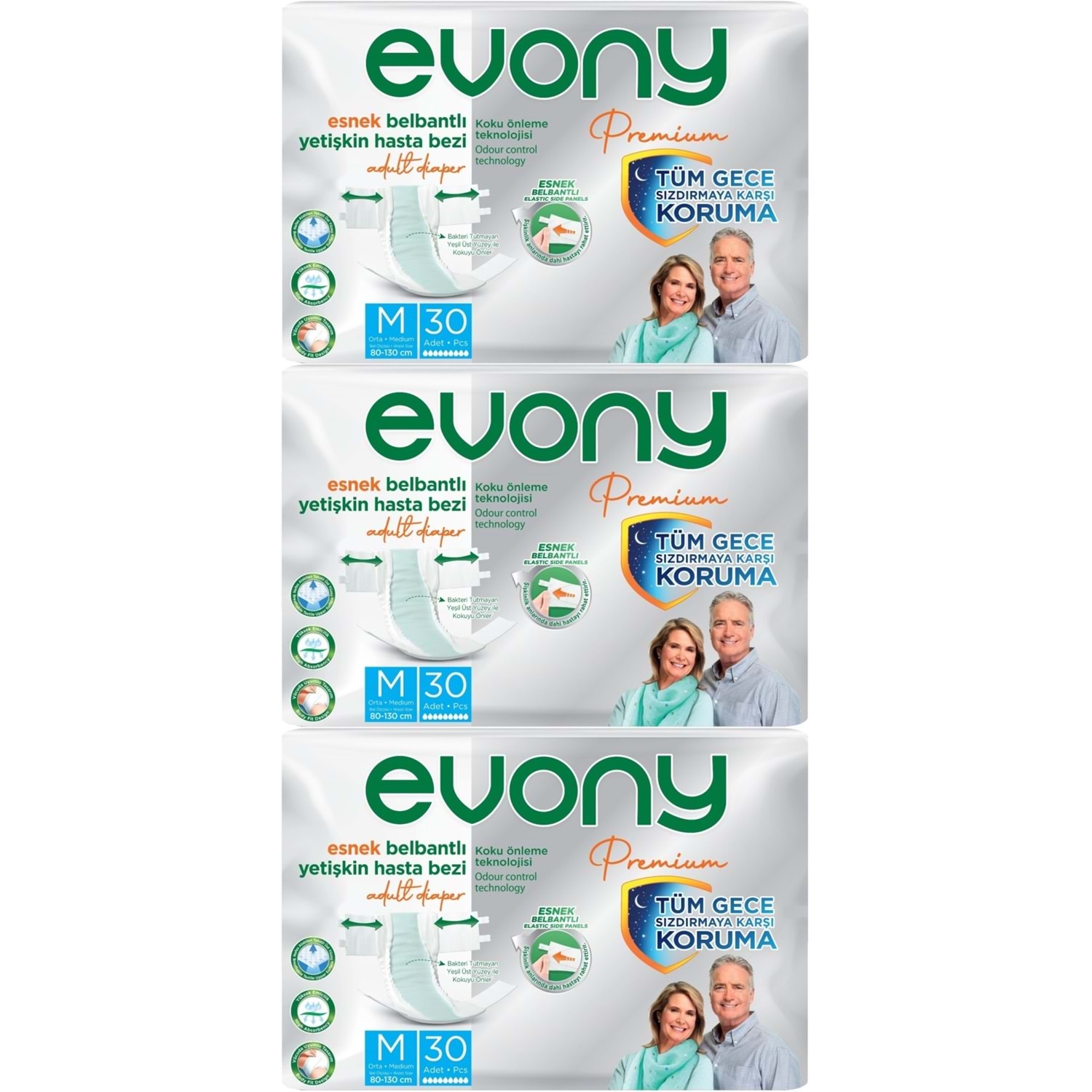 Evony Premium Yetişkin Bezi Bel Bantlı Tekstil Yüzey M - Orta - Medium 90 Adet