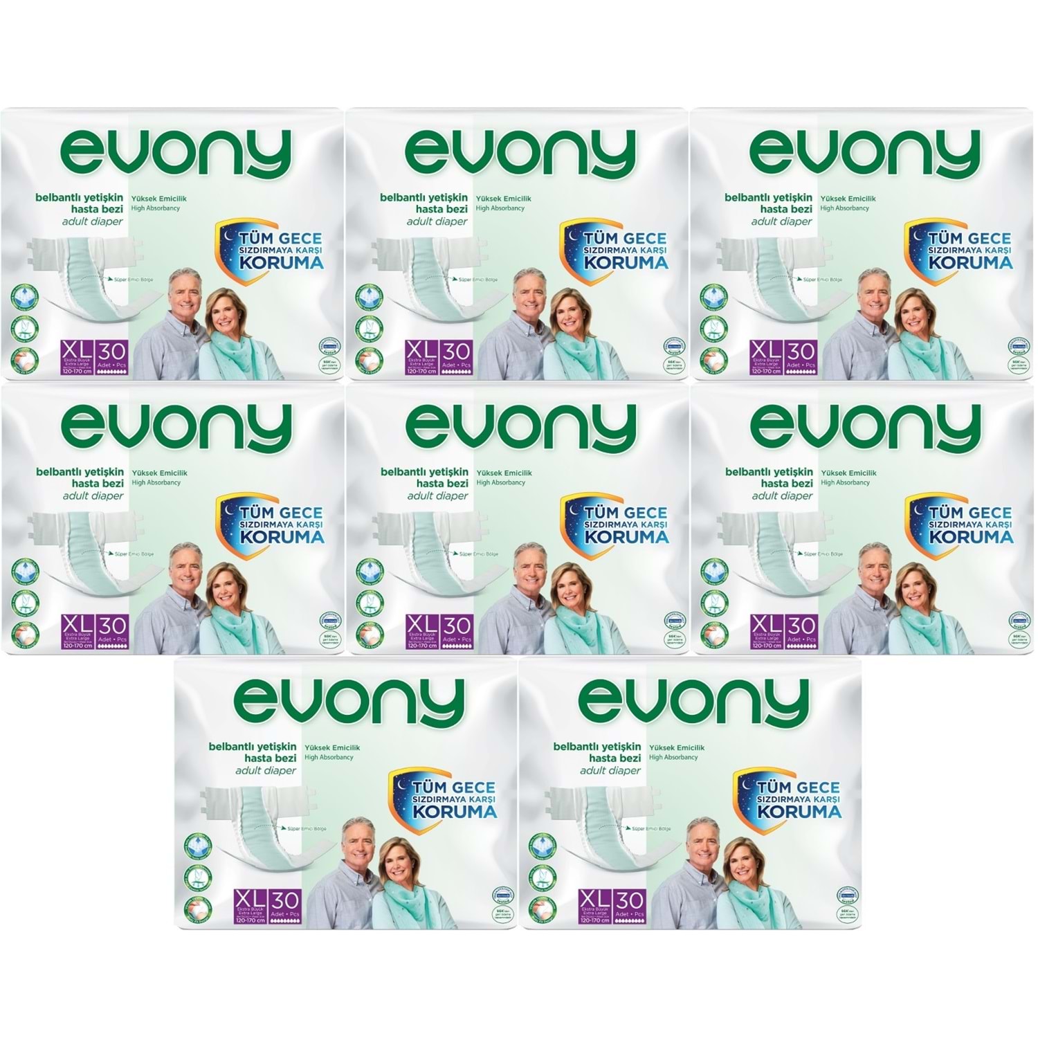 Evony Yetişkin Bezi Bel Bantlı Tekstil Yüzey Ekstra Büyük (XL) 240 Adet (8PK*30)