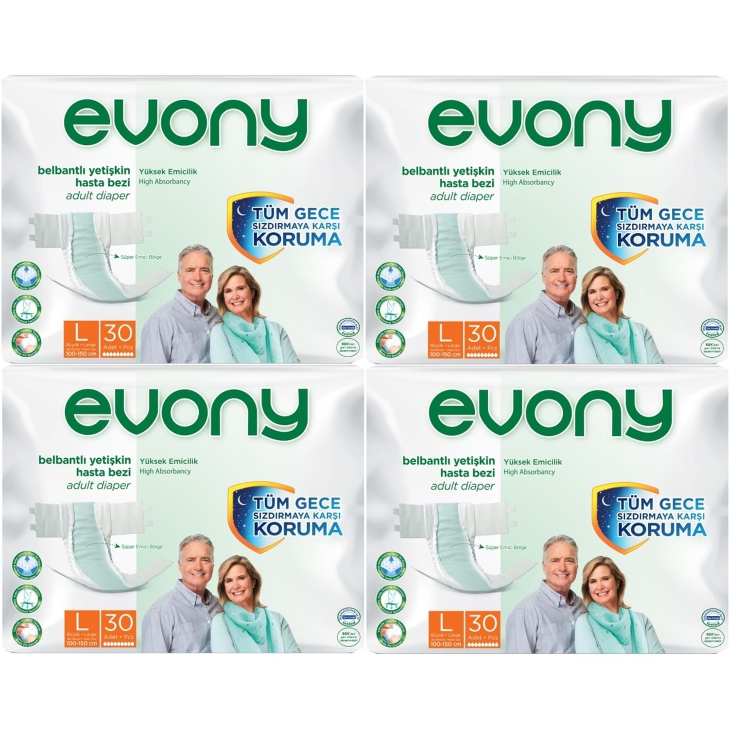 Evony Yetişkin Bezi Bel Bantlı Tekstil Yüzey L-Büyük 120 Adet (4PK*30)