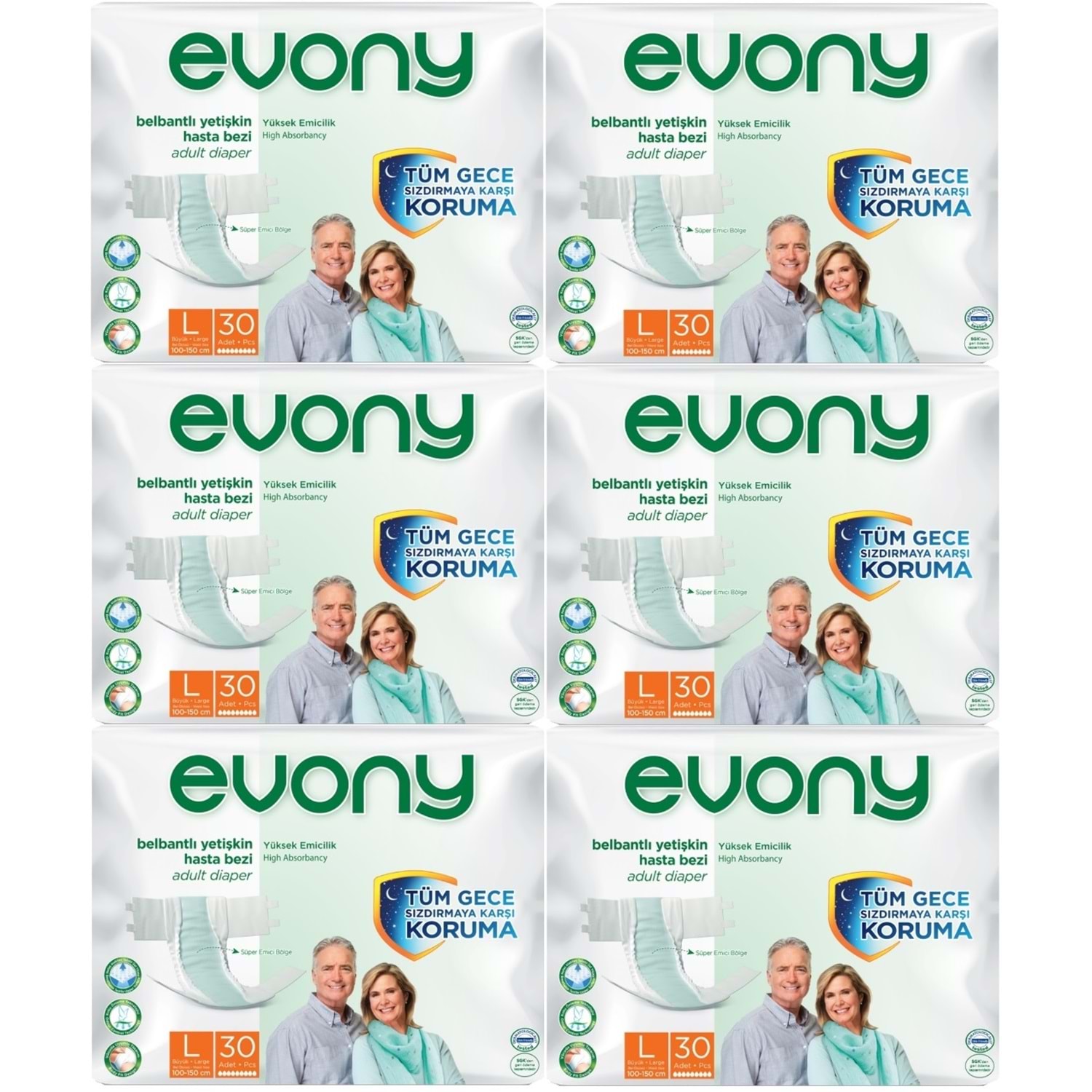 Evony Yetişkin Bezi Bel Bantlı Tekstil Yüzey L-Büyük 180 Adet (6PK*30)