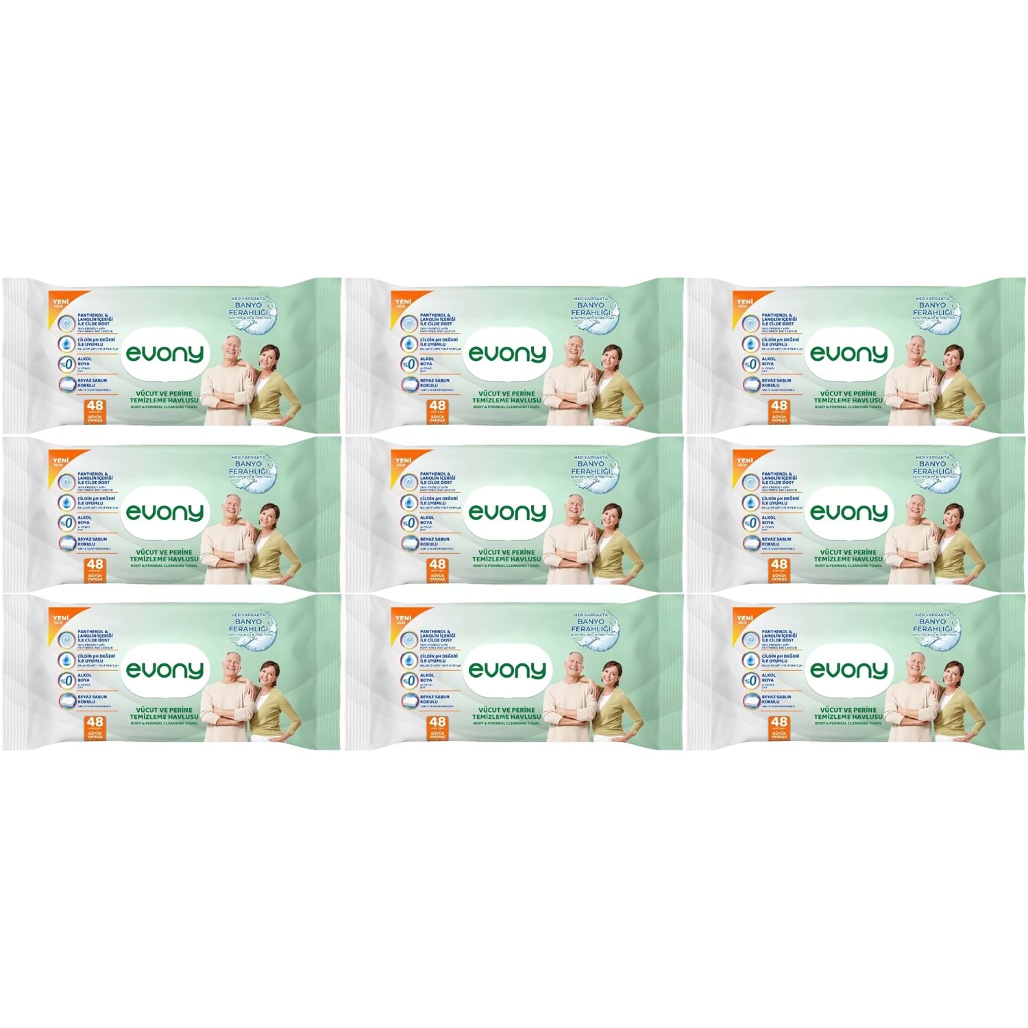 Evony Hasta Vücut Perine Temizleme Islak Mendil Havlu 48 Yaprak XL Banyo Ferahlığı (9 Lu Set)