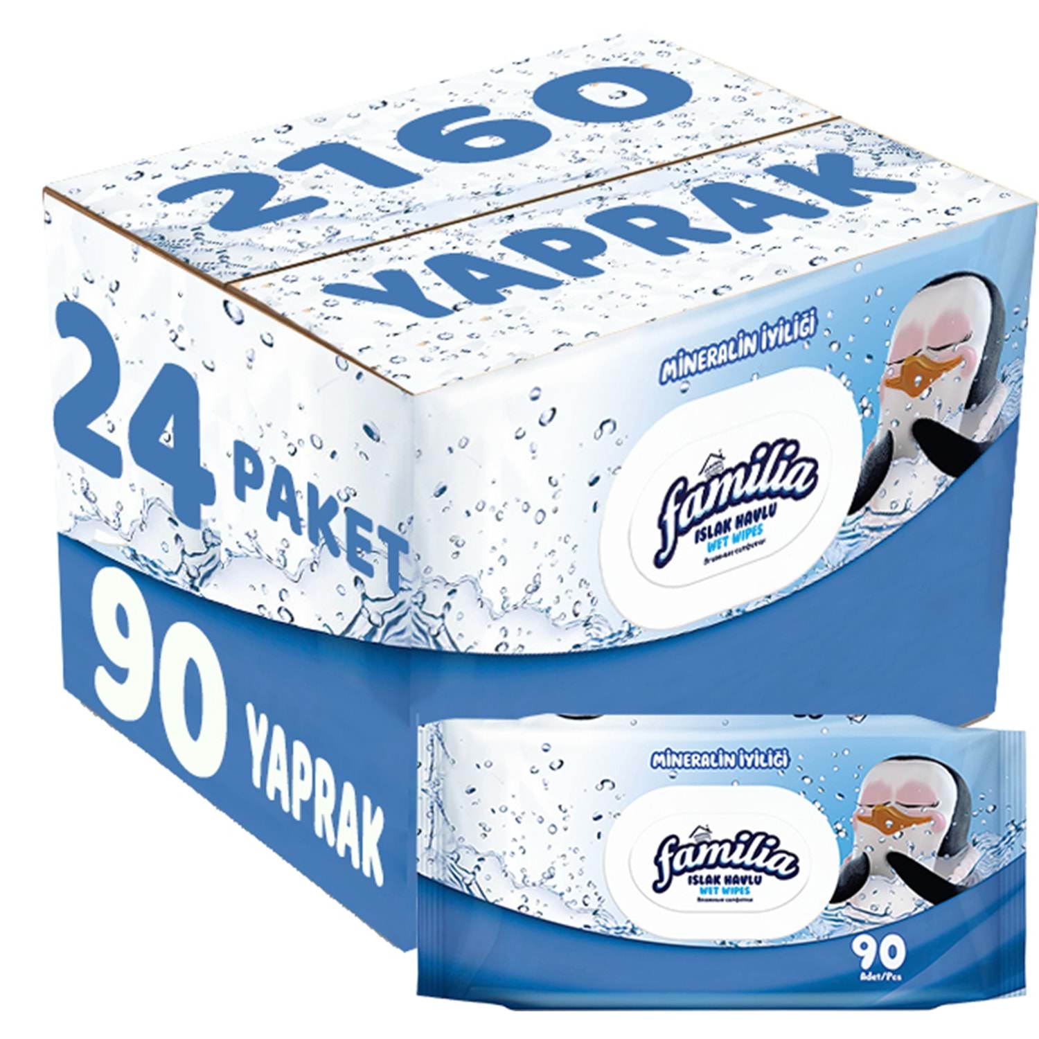 Familia Islak Havlu Mendil Mineralin İyiliği 90 Yaprak Plastik Kapaklı 24 Lü Set 2160 Yaprak