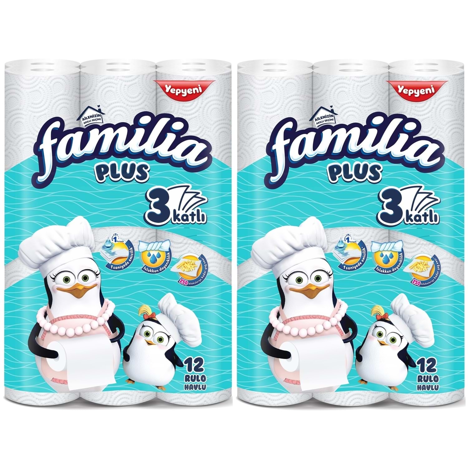 Familia Kağıt Havlu Plus 24’lü Paket, 3 katlı yapısı ile yüksek emicilik ve dayanıklılık sunar. 2PK*12 avantajlı paketi ile mutfak ve ev temizliğinde pratik kullanım sağlar.
