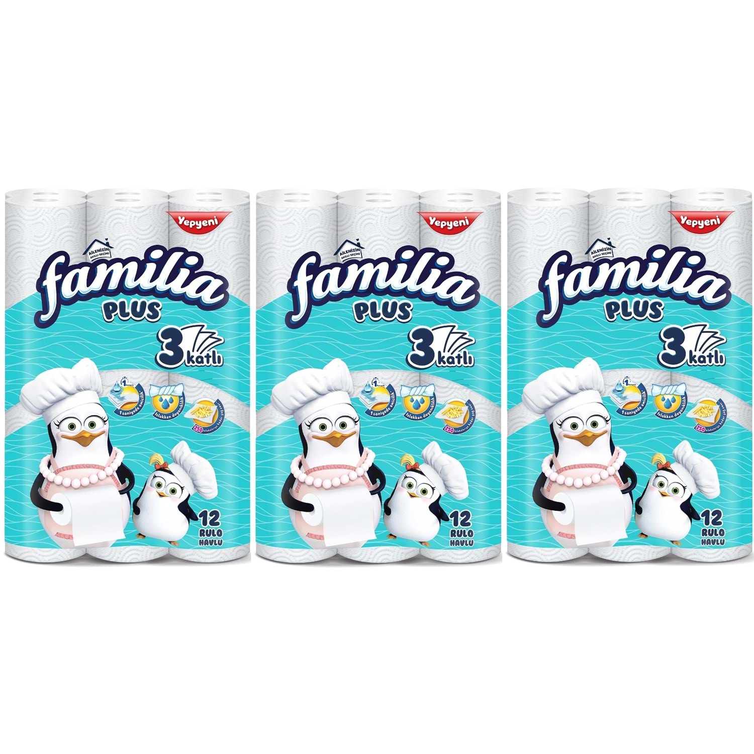 3 katlı dayanıklı yapısı ile yüksek emicilik sağlar. 3PK*12 avantajlı içeriği sayesinde mutfak ve ev temizliğinde uzun süreli kullanım imkânı sunar.