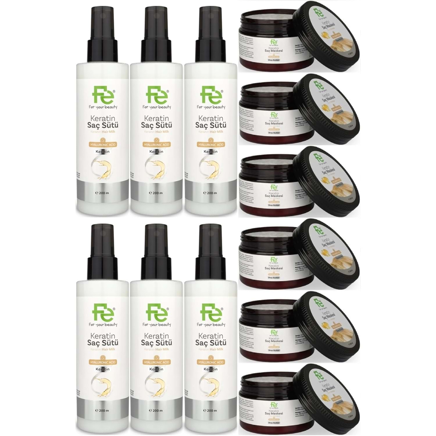 Fe Keratin Saç Sütü 200ML & Saç Maskesi 300ML (Karma 12 Li Set)