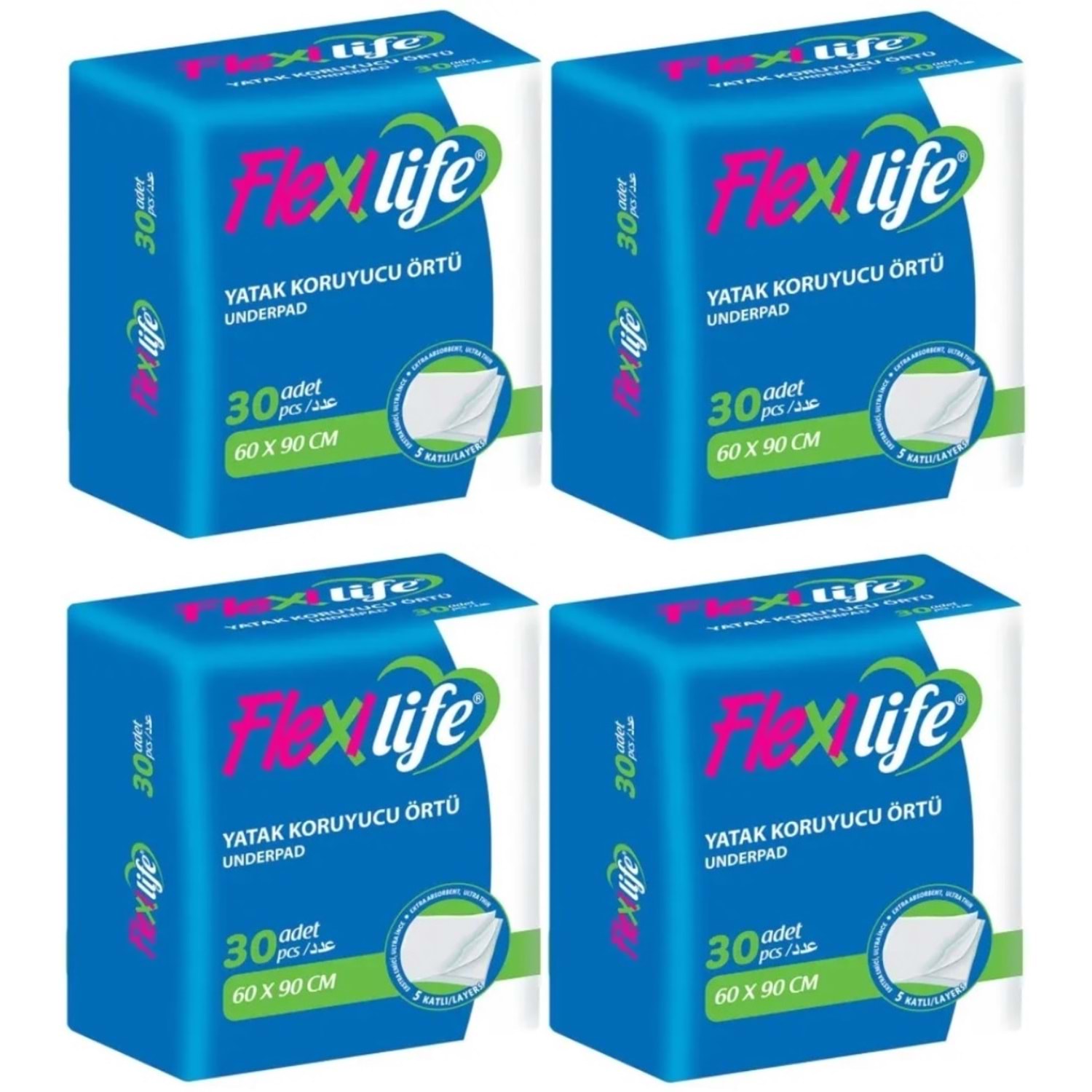 Flexi Life Hasta Alt Açma Yatak Koruyucu Örtü 60*90CM (İç Adet 30 Adet) Klasik - 4 Adet