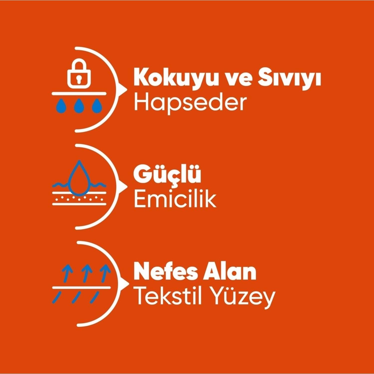• Yüksek emici tabaka sayesinde sıvıyı hızla emer, yüzeyi kuru tutar.