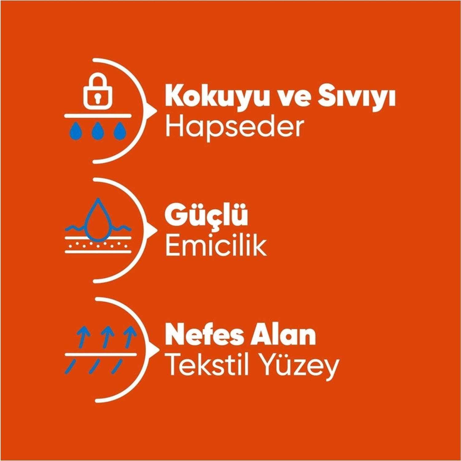 • Yüksek emicilik kapasitesiyle sıvıyı hızla emer, cilt yüzeyini kuru tutar.
