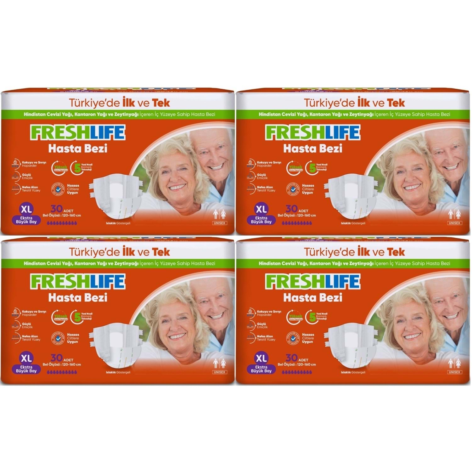 FreshLife Yetişkin Hasta Bezi Bel Bantlı XL - Ekstra Large - Extra Large 120 Adet (4PK*30)