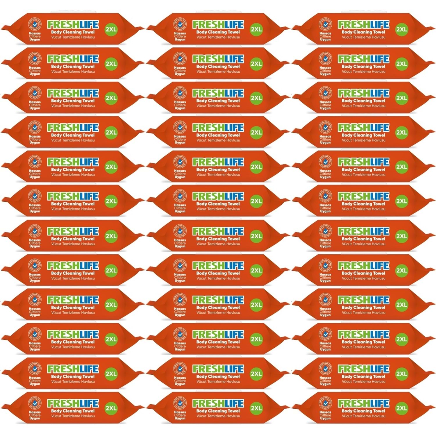 Freshlife Yetişkin Vücut Temizleme Islak Mendil Havlu 50 Yaprak XL (36 Lı Set)