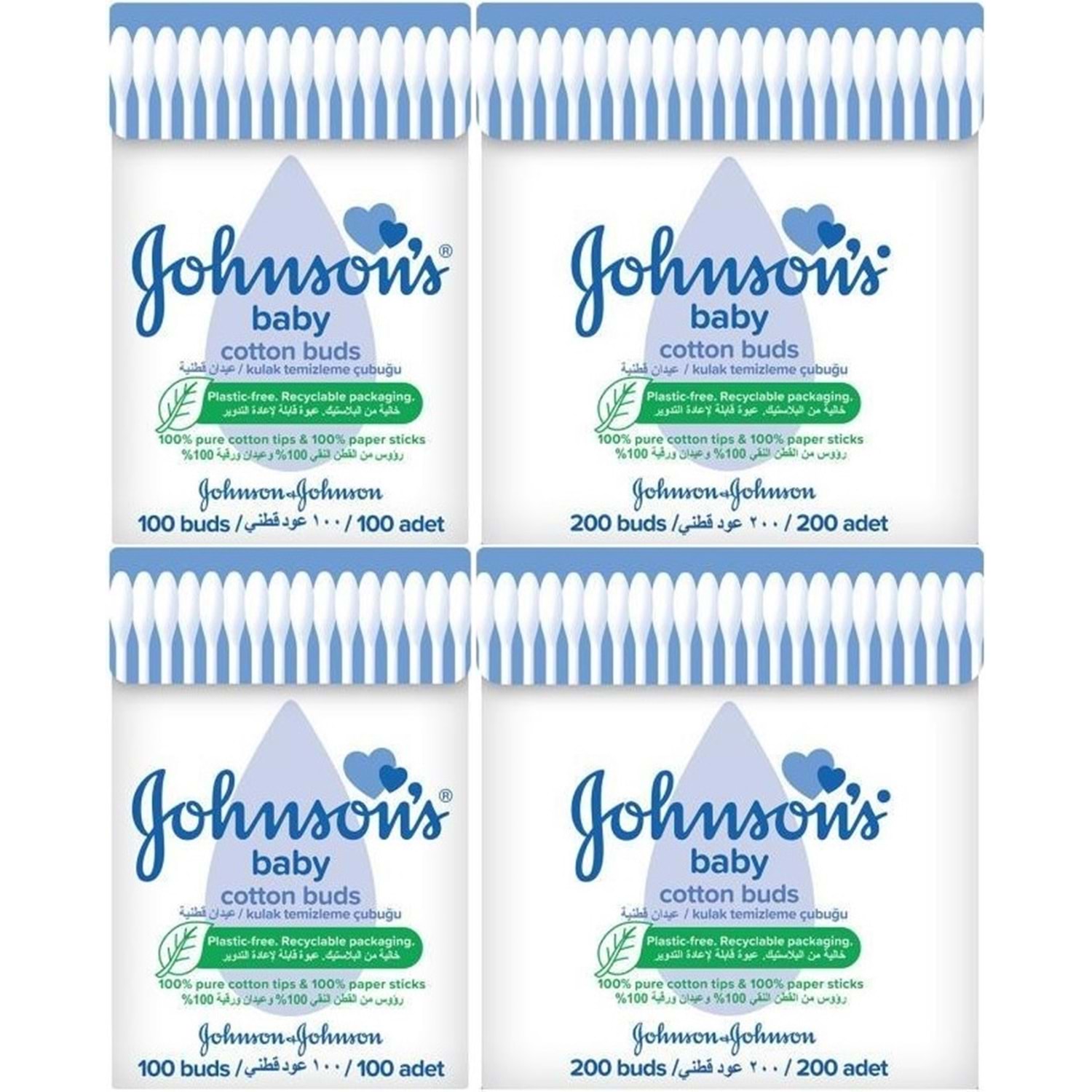Johnsons Baby Kulak Temizleme Çubuğu 100 Adet + 200 Adet Toplam 600 Adet (Karma Set)