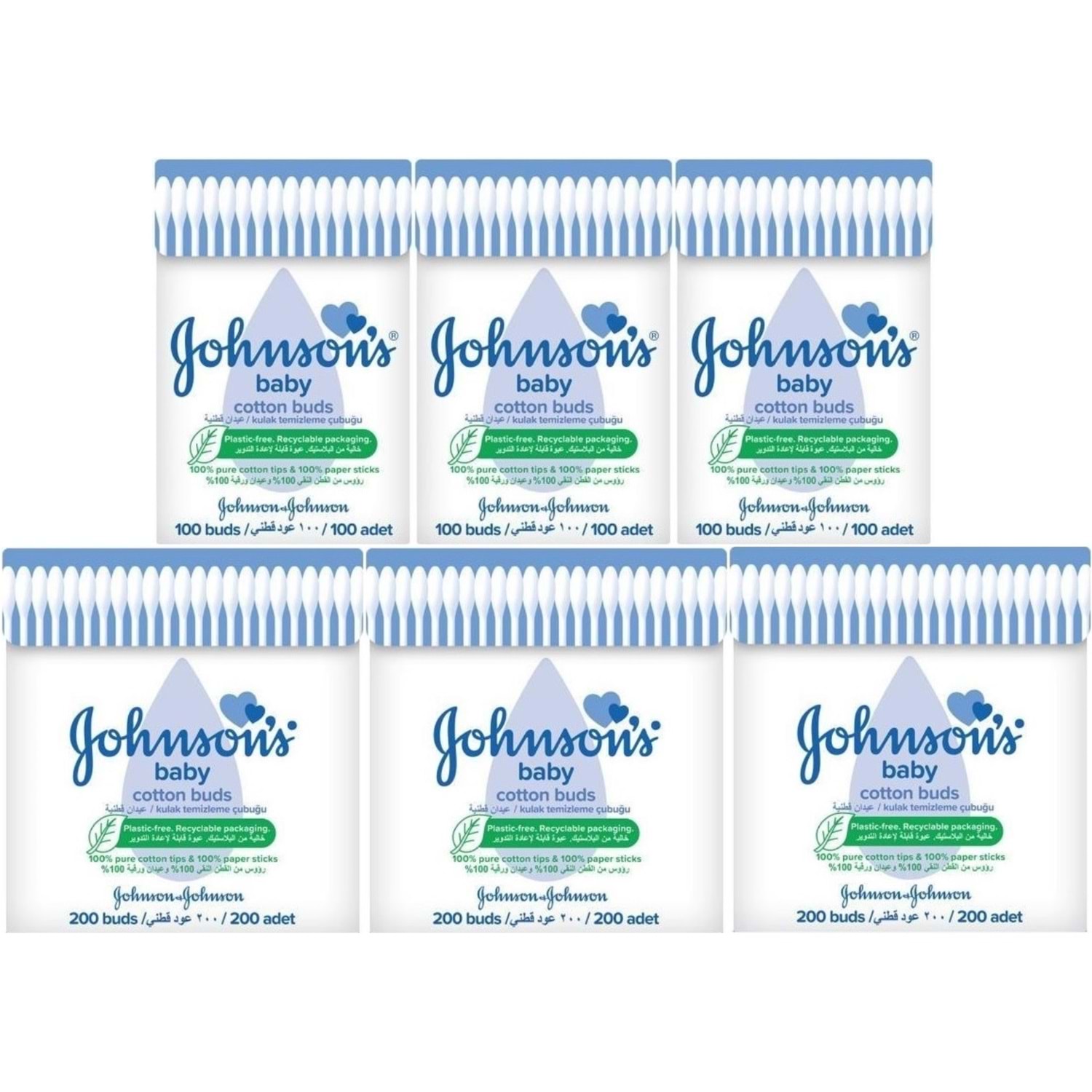 Johnsons Baby Kulak Temizleme Çubuğu 100 Adet + 200 Adet Toplam 900 Adet (Karma Set)