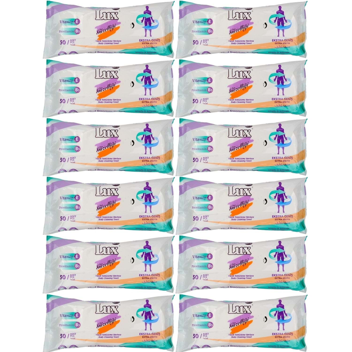 Lüx Hasta Vücut Temizleme Islak Mendil Havlu 50 Yaprak XL (12 Li Set)