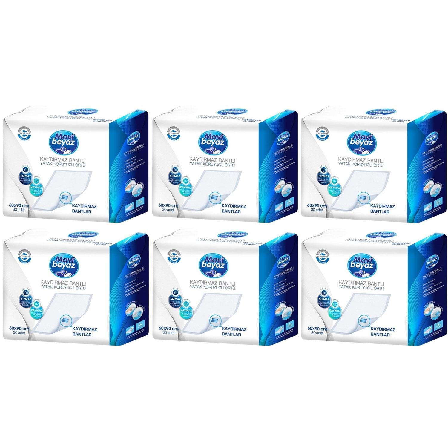 Mavi Beyaz Hasta Alt Açma Yatak Koruyucu Örtü 60*90CM 180 Adet (6Pk*30) Kaydırmaz Bantlı