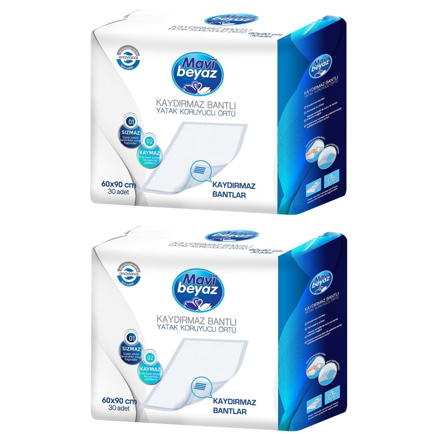 Mavi Beyaz Hasta Alt Açma Yatak Koruyucu Örtü 60*90CM 60 Adet (2Pk*30) Kaydırmaz Bantlı