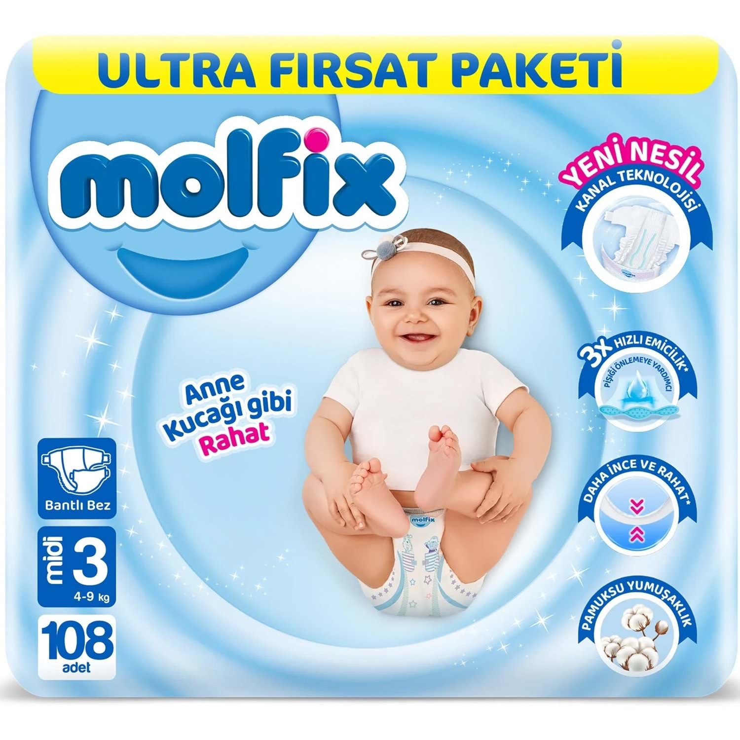 Molfix Bebek Bezi Beden:3 (4-9Kg) Midi 432 Adet Avantaj Ultra Fırsat Pk