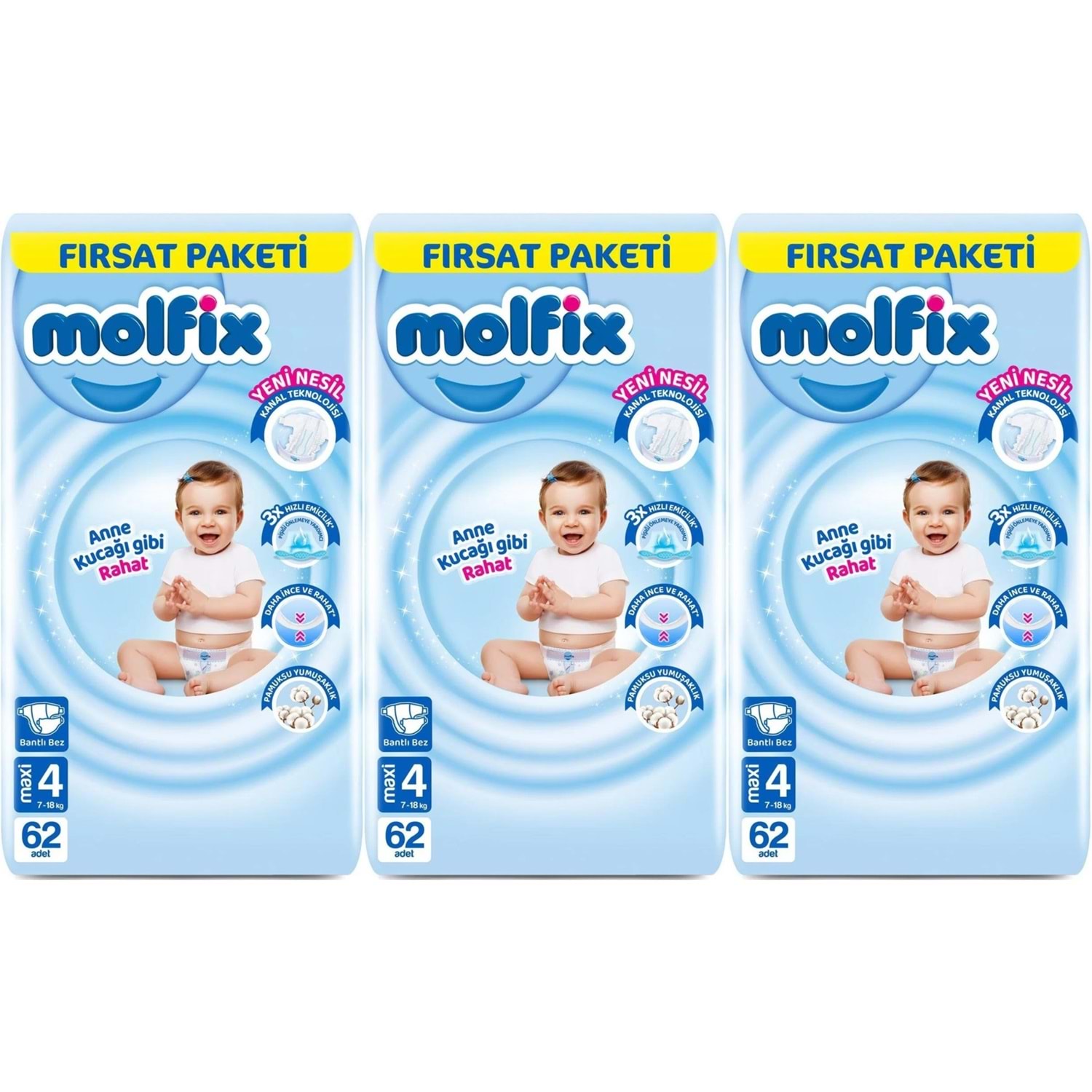 Molfix Bebek Bezi Beden:4 (7-14KG) Maxi 186 Adet Aylık Fırsat Pk