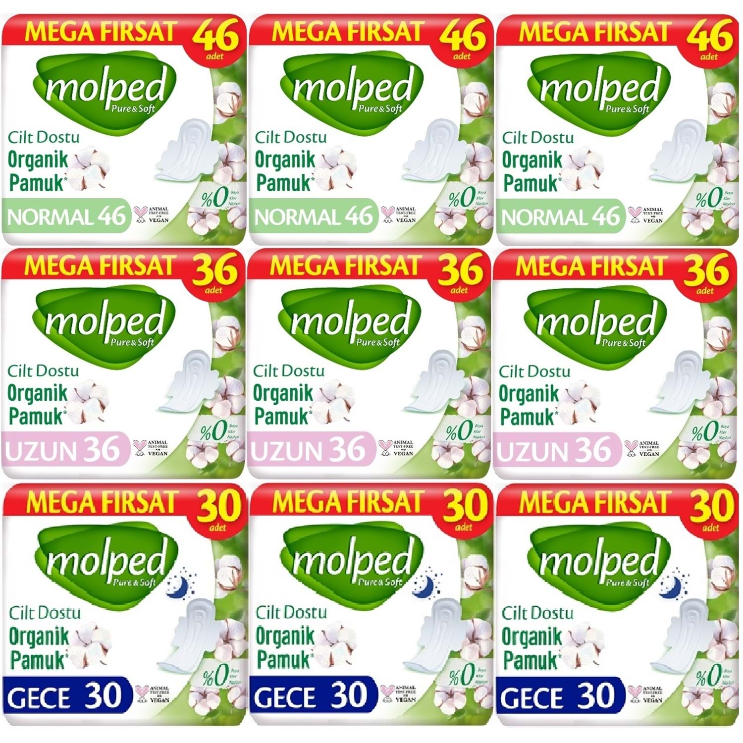 Molped Pure&Soft Hijyenik Ped Avantaj PK Normal 138 + Uzun 108 + Gece 90 Toplam : 336 Adet