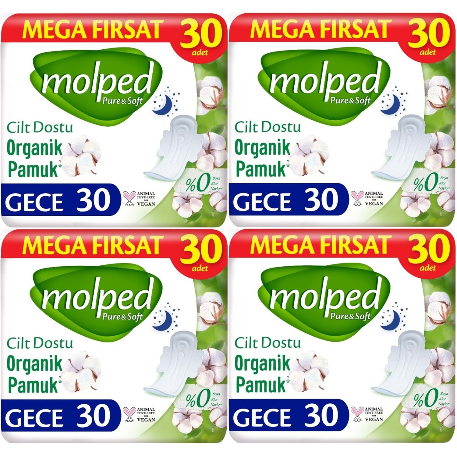 Molped Pure&Soft Hijyenik Ped Gece 120 (4PK*30) Adet Mega Pk