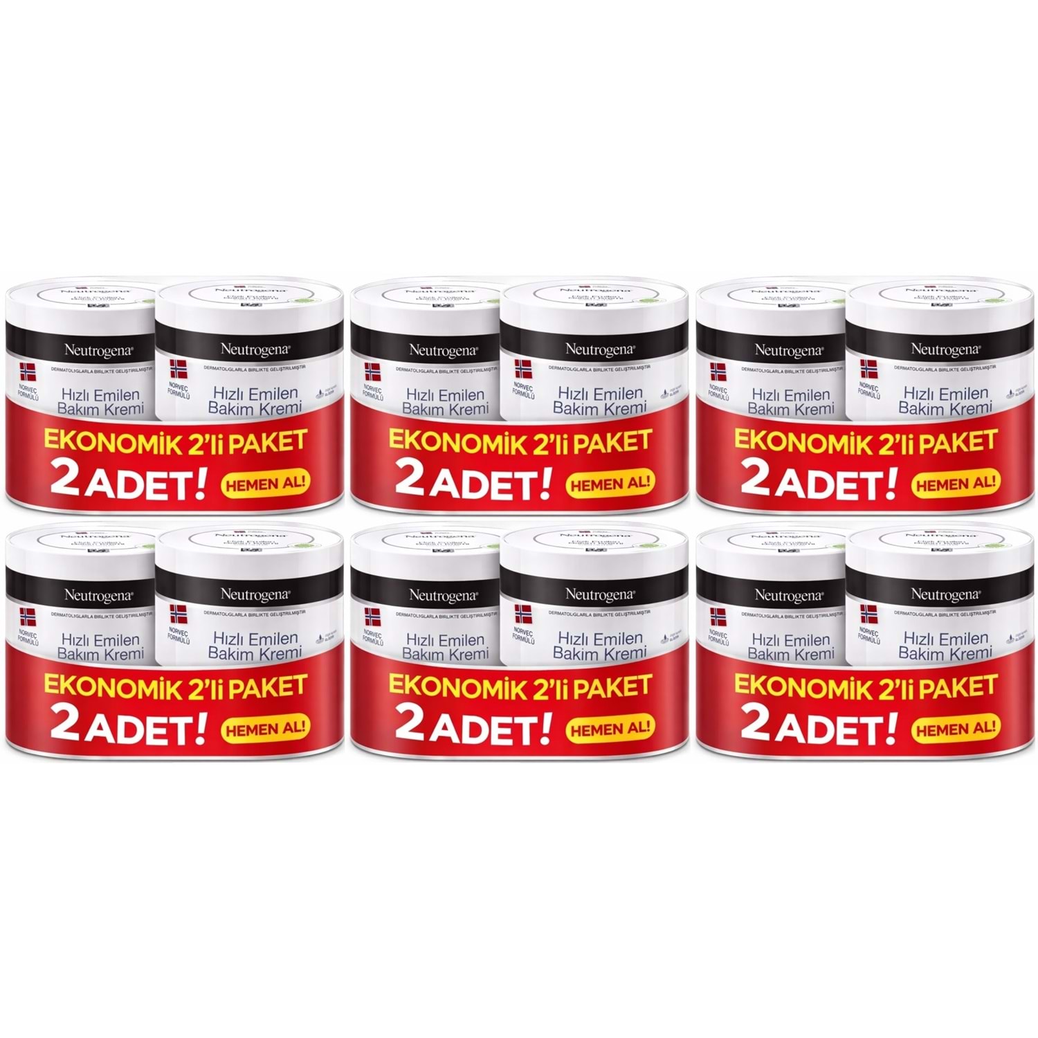 Neutrogena Norveç Formülü Hızlı Emilen Bakım Kremi 200ML+200ML 400ML Avantaj PK (6 Lı Set)