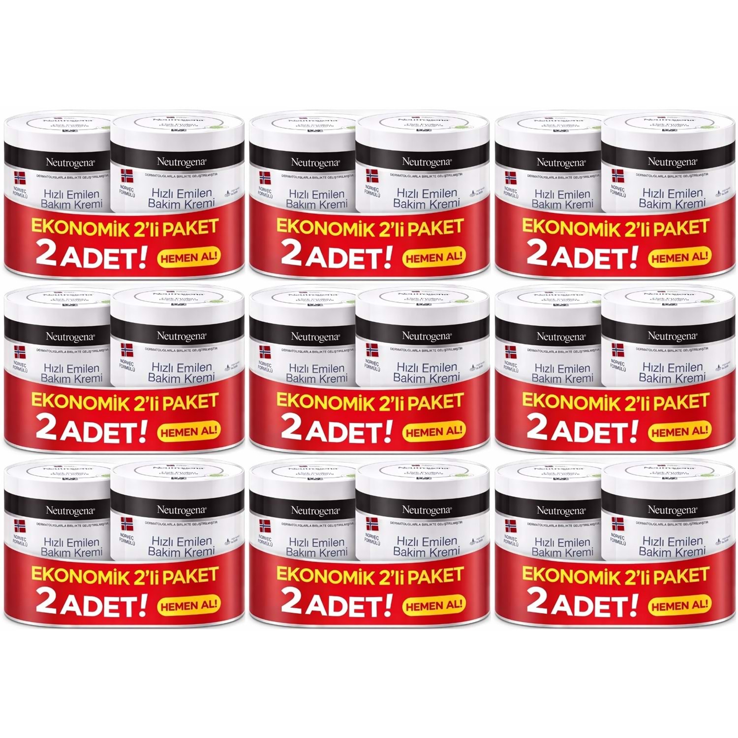 Neutrogena Norveç Formülü Hızlı Emilen Bakım Kremi 200ML+200ML 400ML Avantaj PK (9 Lu Set)