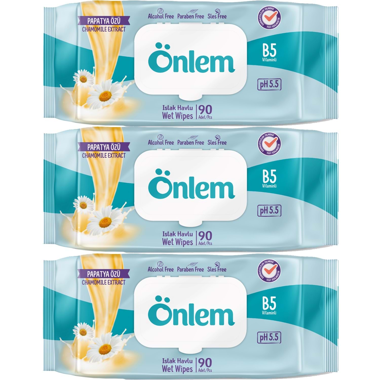 Önlem Islak Havlu Mendil 90 Yaprak Papatya Özü (3 Lü Set) Plastik Kapaklı 270 Yaprak