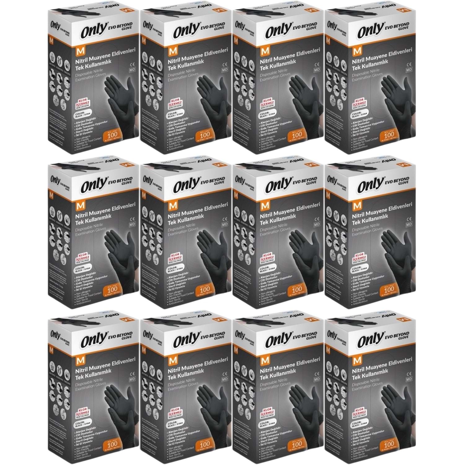 Only Evo Beyond Glove Nitril Siyah Pudrasız Muayene Eldiveni 1200 Lü Set M- Medium - Orta (12PK*100)