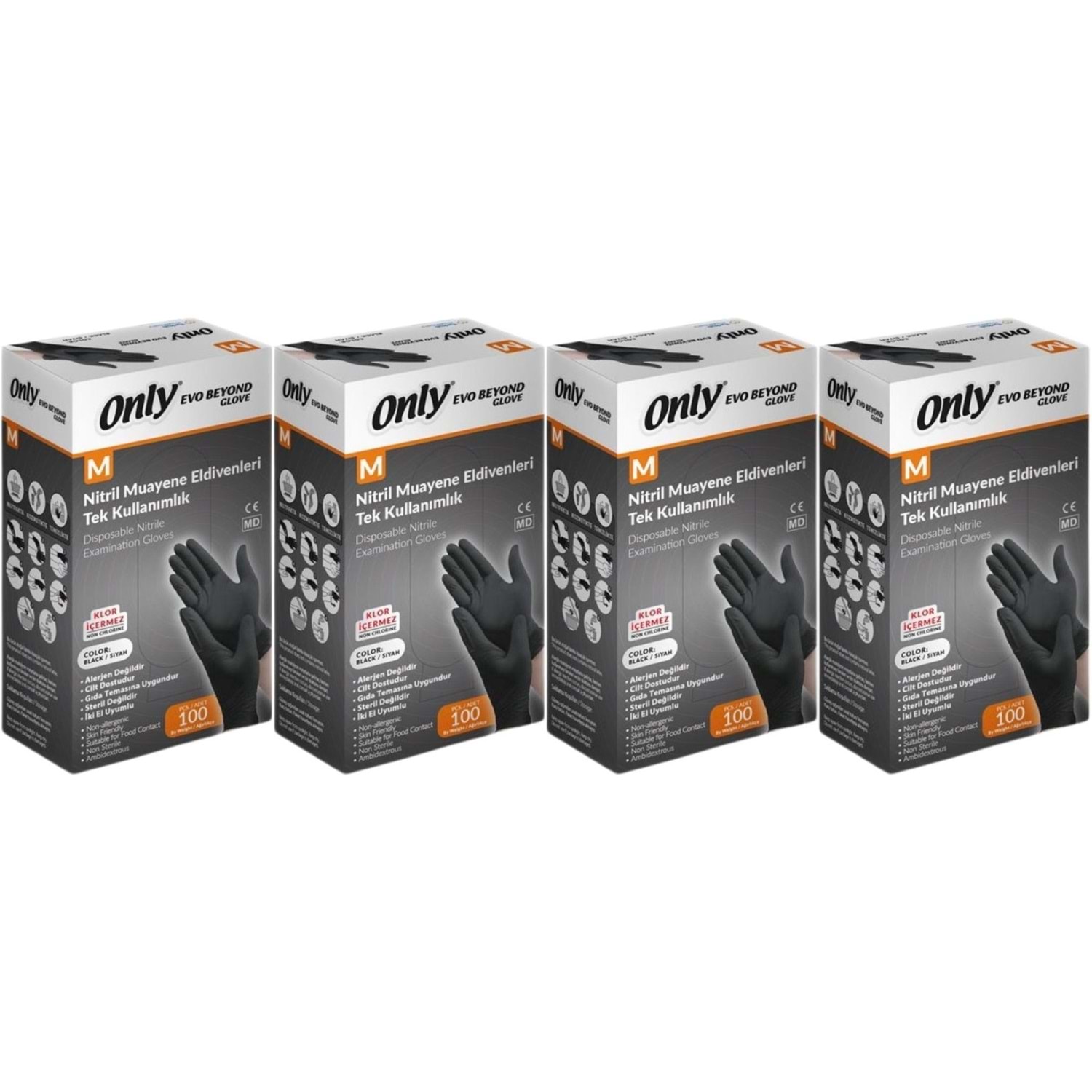 Only Evo Beyond Glove Nitril Siyah Pudrasız Muayene Eldiveni 400 Lü Set M - Medium - Orta (4PK*100)