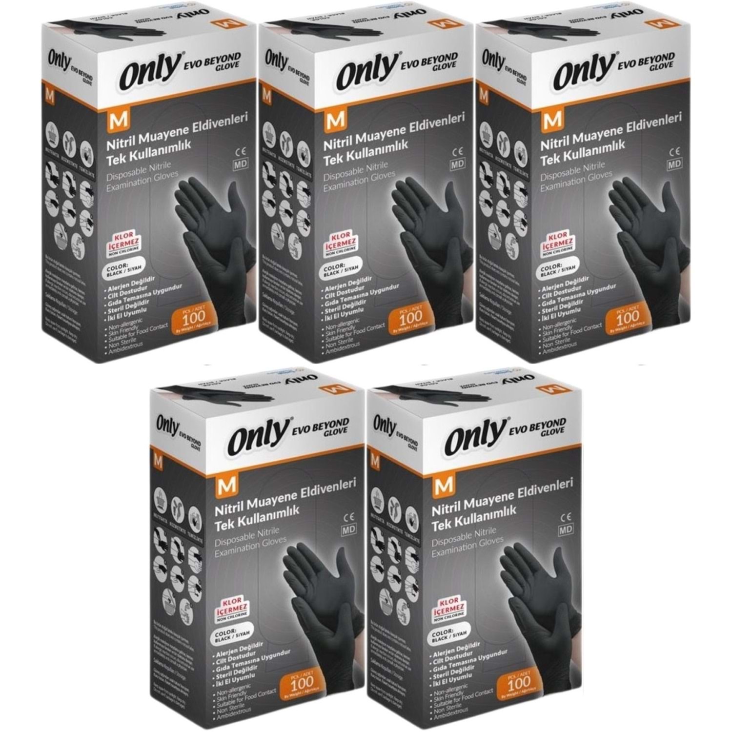 Only Evo Beyond Glove Nitril Siyah Pudrasız Muayene Eldiveni 500 Lü Set M - Medium - Orta (5PK*100)