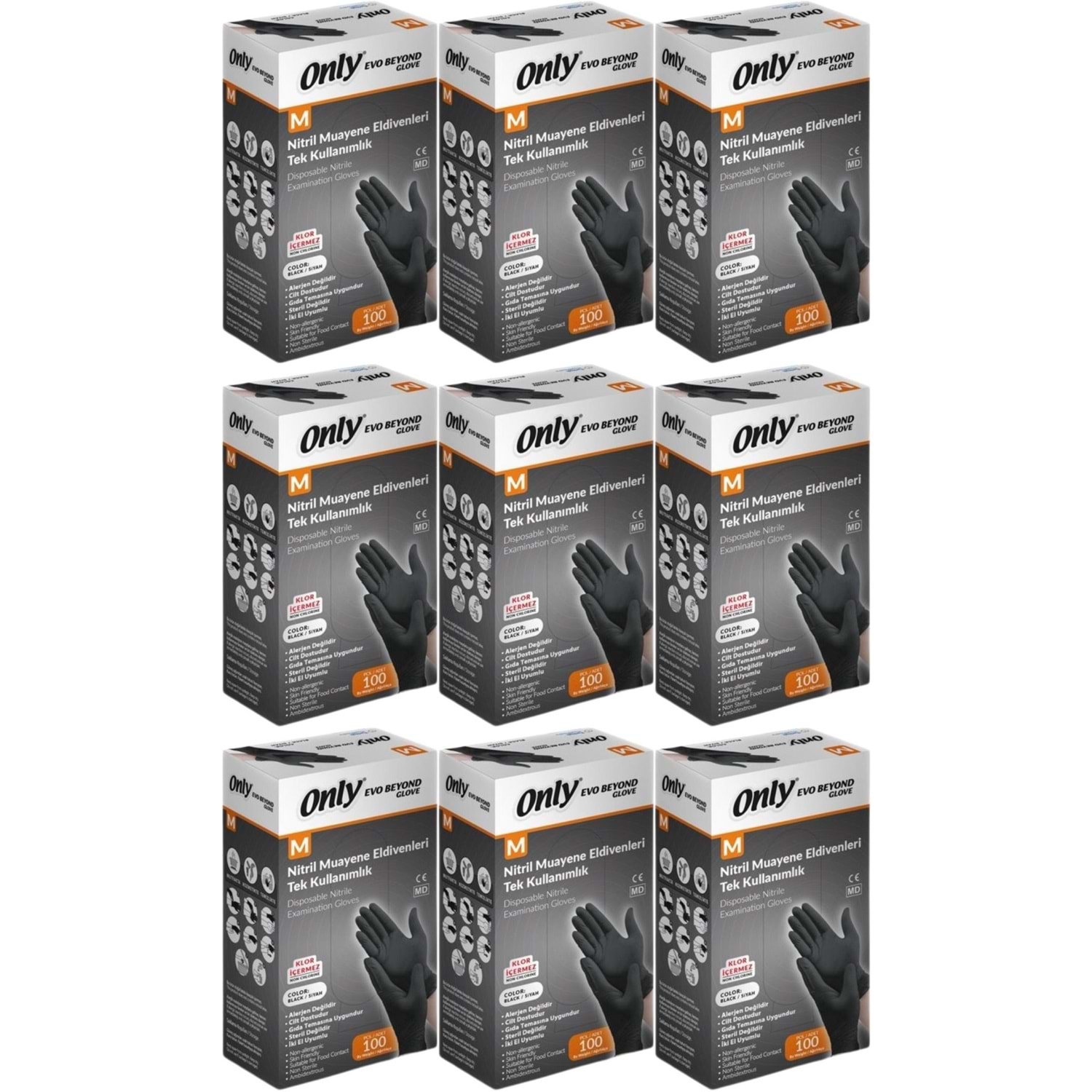 Only Evo Beyond Glove Nitril Siyah Pudrasız Muayene Eldiveni 900 Lü Set M - Medium - Orta (9PK*100)
