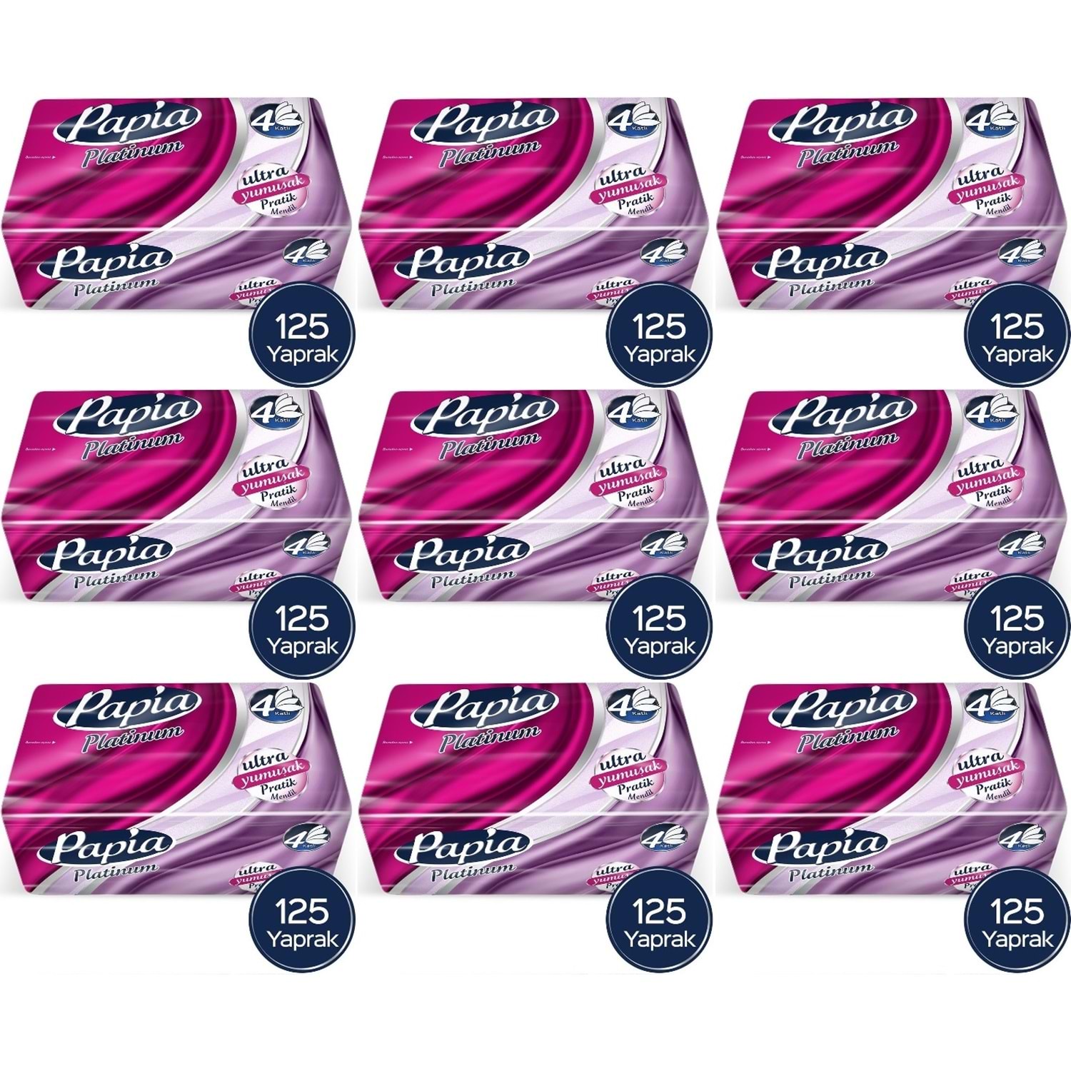 Papia Platinum Pratik Mendil 125 Yaprak (4 Katlı) 1125 Yaprak (9PK*125)