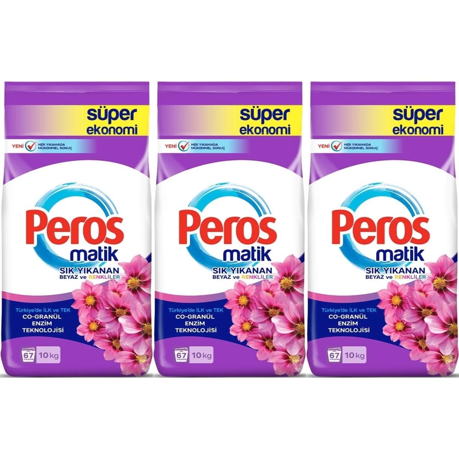 Peros Matik Toz Çamaşır Deterjanı 30KG Yıldız Çiçeği (Beyaz ve Renkliler) (201 Yıkama) (3PK*10KG)