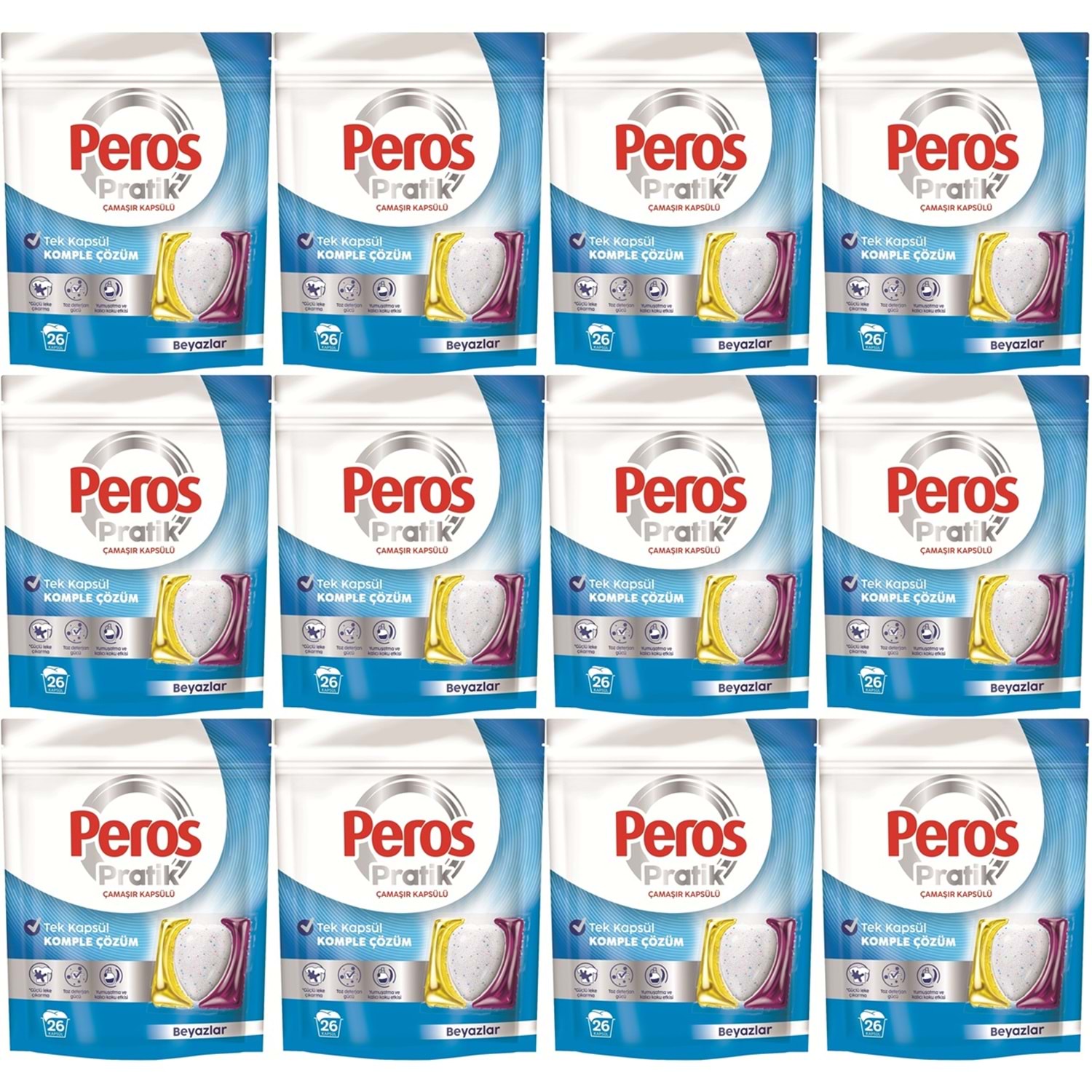 Peros Pratik Matik Çamaşır Deterjanı Kapsülü - Tableti 312 Adet Beyazlar (12PK*26)