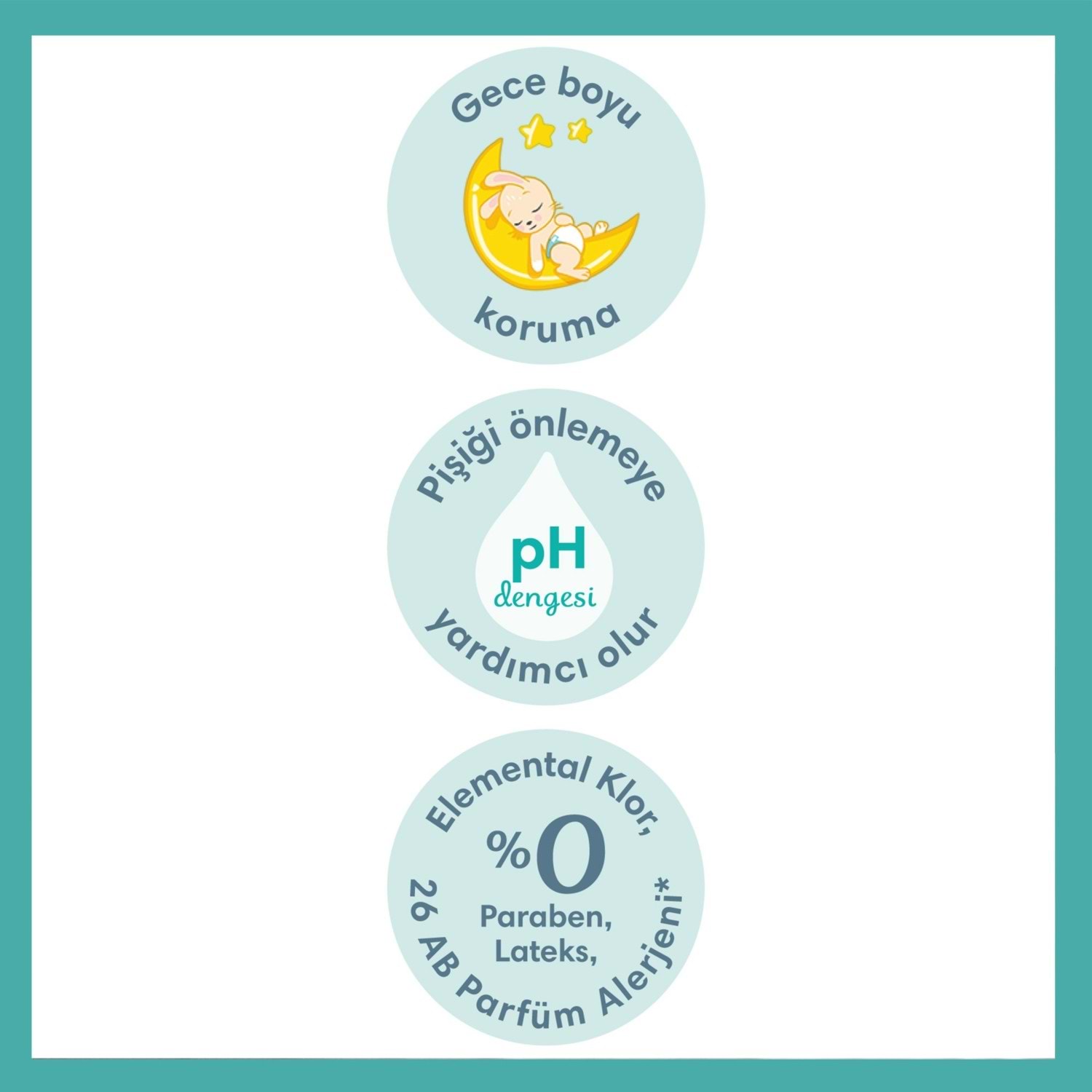 Esnek Yan Bantlar: Ergonomik rahat yapısıyla gece boyu sızdırmayı engeller.
