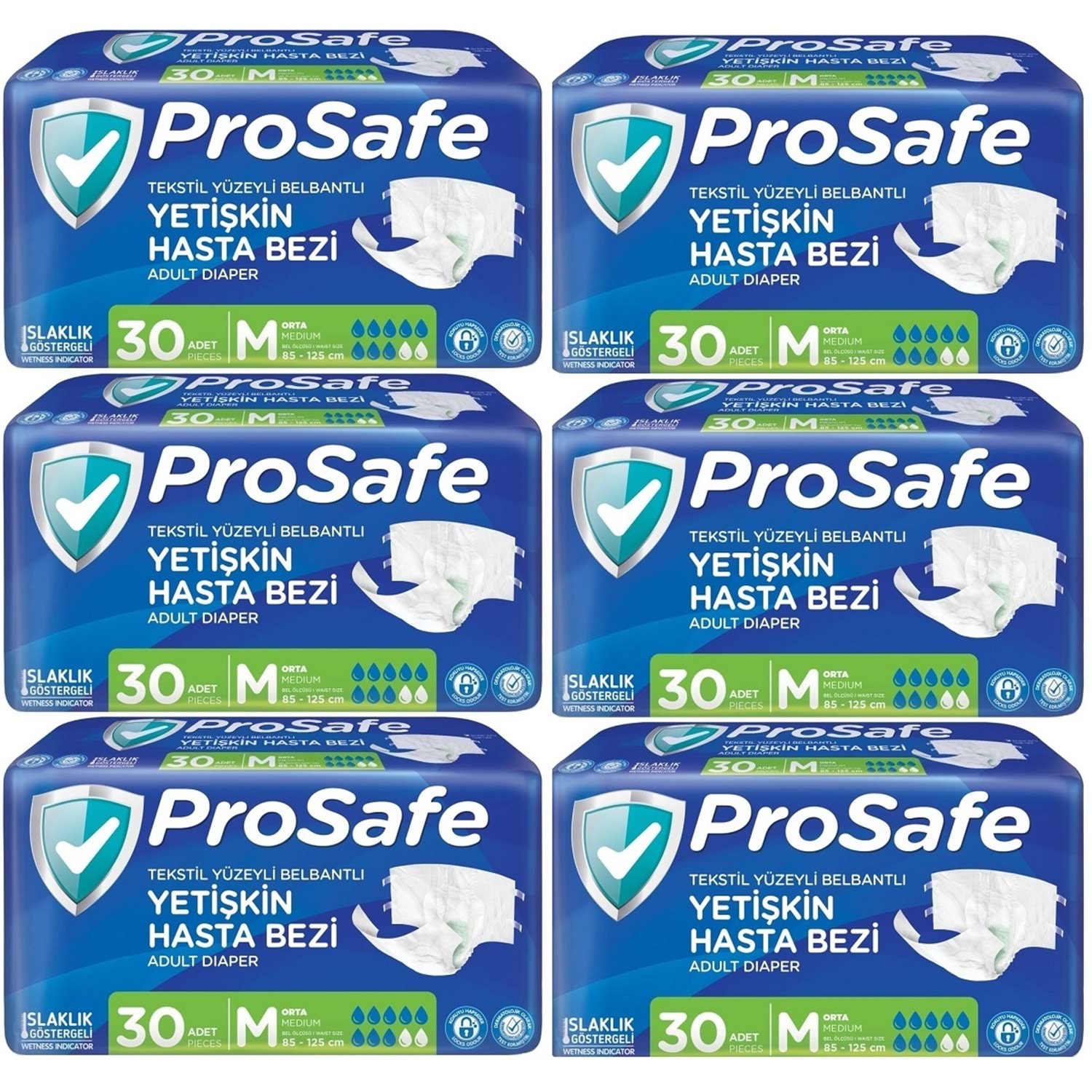 Prosafe Hasta Bezi Yetişkin Bel Bantlı Tekstil Yüzey M - Medium - Orta Boy 180 Adet (6PK*30)