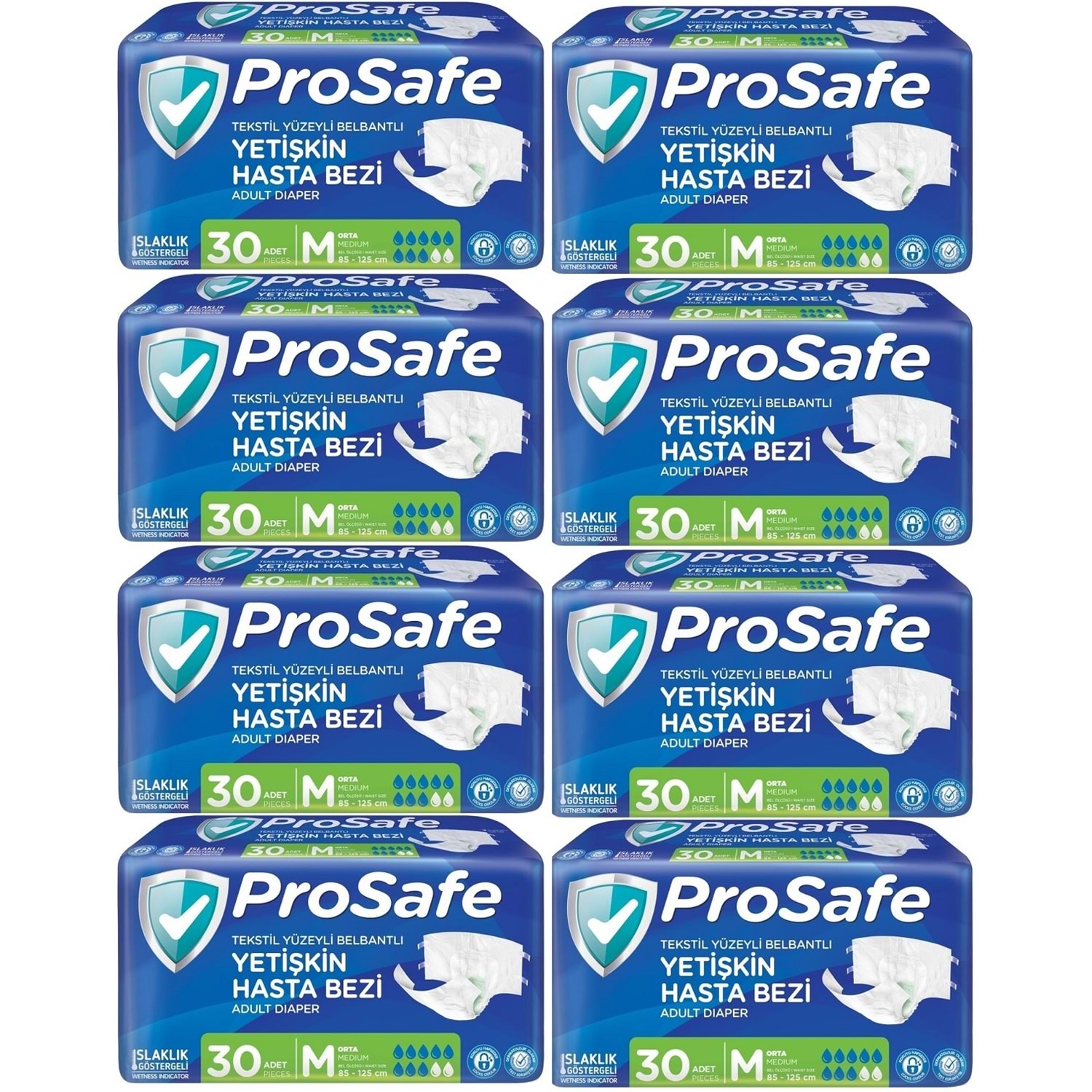 Prosafe Hasta Bezi Yetişkin Bel Bantlı Tekstil Yüzey M - Medium - Orta Boy 240 Adet (8PK*30)