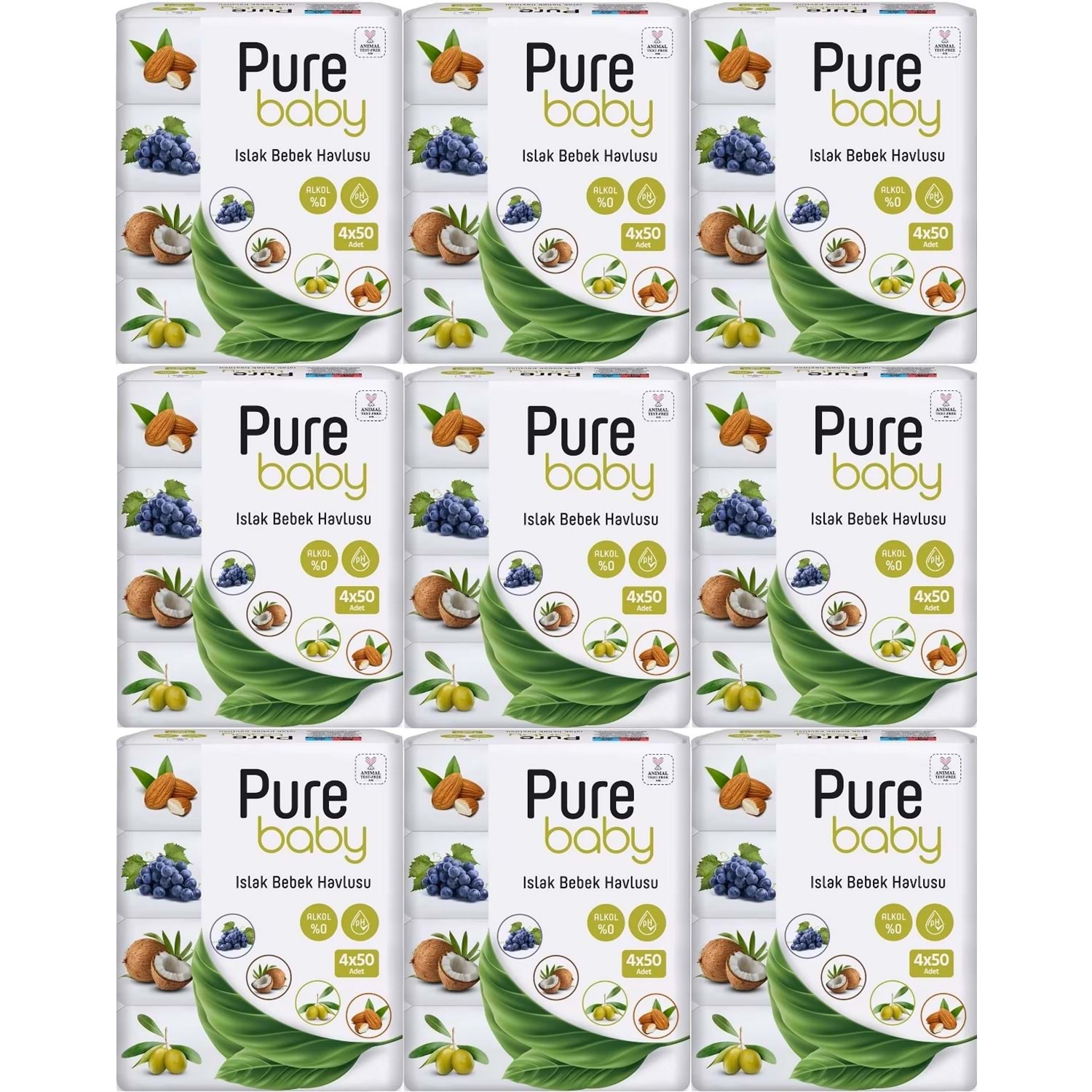 Pure Baby Wipes Islak Havlu Mendil 50 Yaprak 36 Lı Set (1800 Yaprak) (Meyveli)