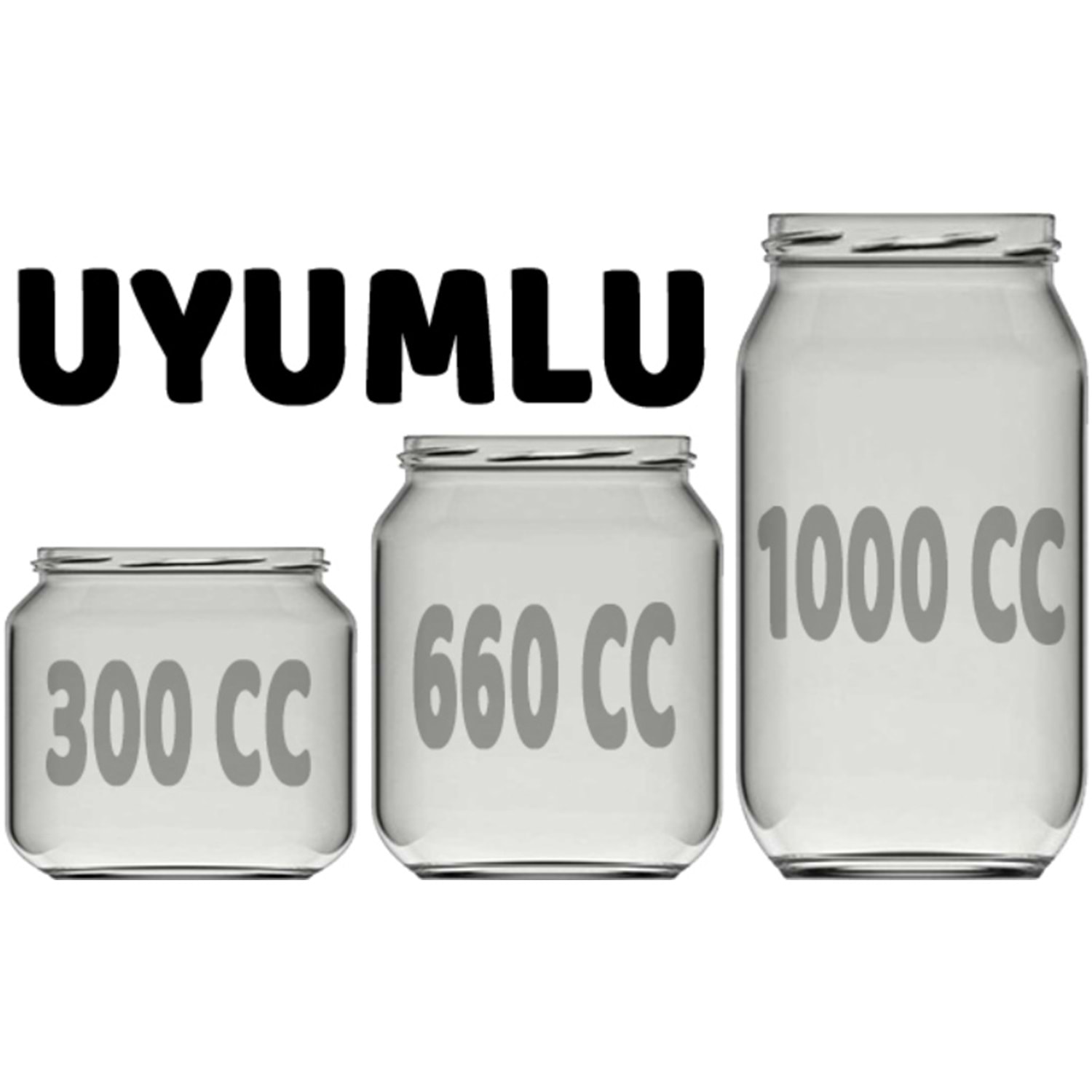 *82 mm çaplı standart cam konserve kavanozlarına uygundur.(230-660-1500 cc arası)