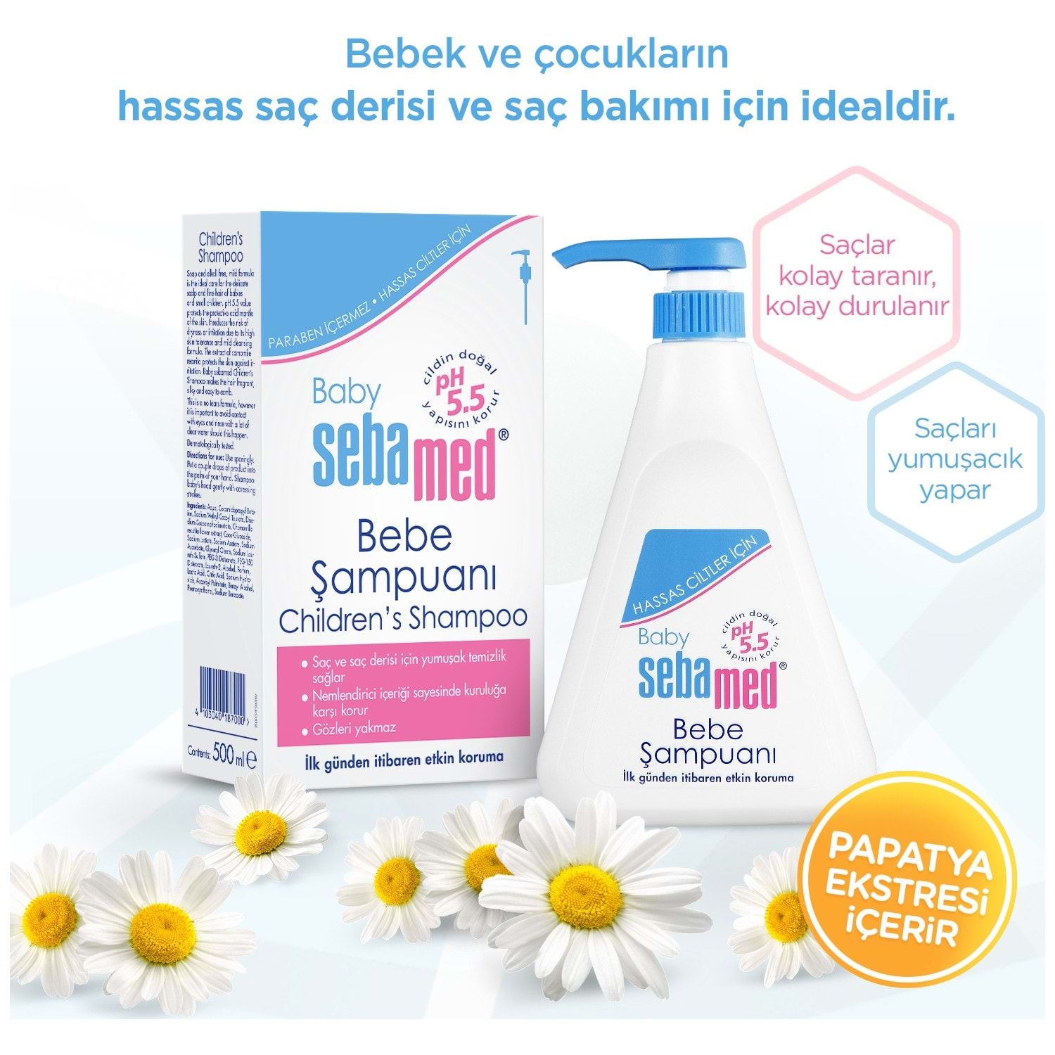 Sebamed Bebek Şampuanı, bebeklerin hassas saç ve saç derisi için nazik temizlik sunan özel formülüyle günlük kullanıma uygundur. Pompalı şişesi pratik kullanım sağlar. Saçı ve saç derisini yumuşak bir şekilde temizlemeye yardımcı olur.