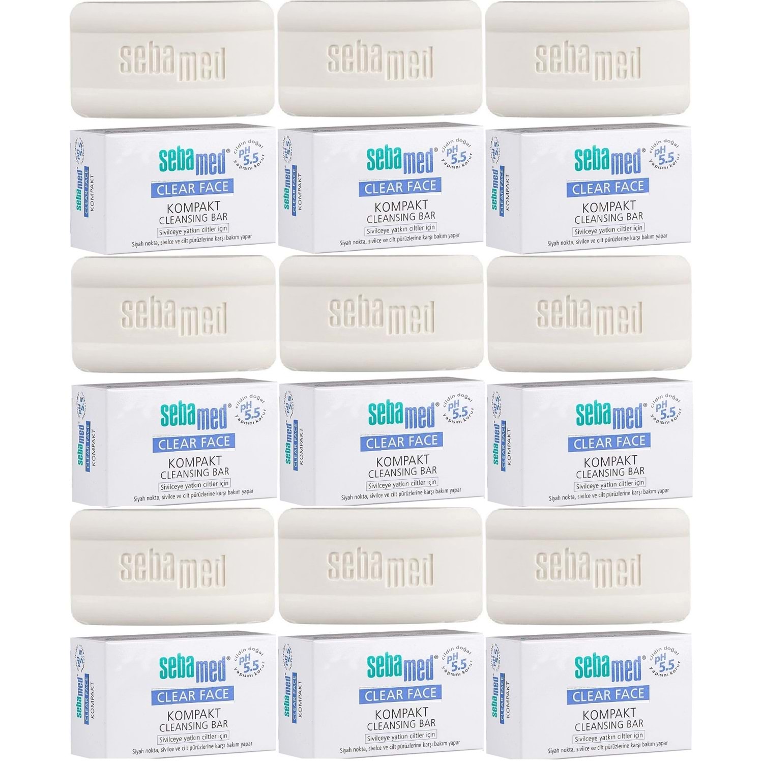 Sebamed Clear Face Kompakt Yüz Temizleme Barı Sabun Sivilceye Yatkın Cilt 100GR (9 Lu Set)