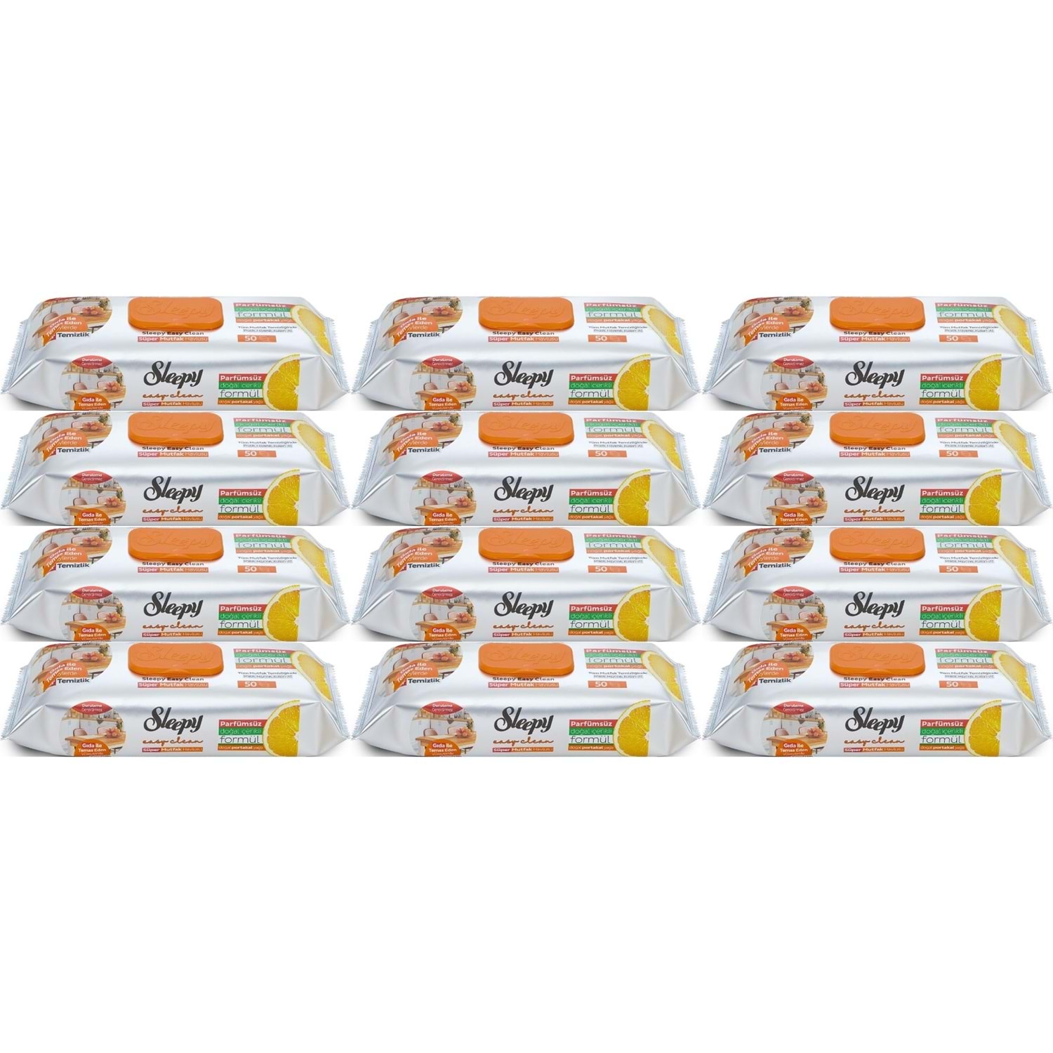 Sleepy Easy Clean Yüzey Temizlik Mutfak Havlusu - Mendili 50 Yaprak Portakal Yağlı (12 Li Set) 600 Yaprak