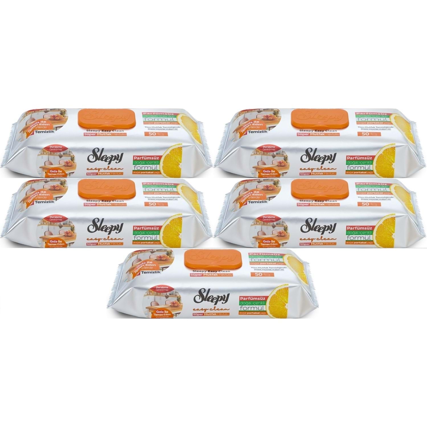 Sleepy Easy Clean Yüzey Temizlik Mutfak Havlusu - Mendili 50 Yaprak Portakal Yağlı (5 Li Set) 250 Yaprak