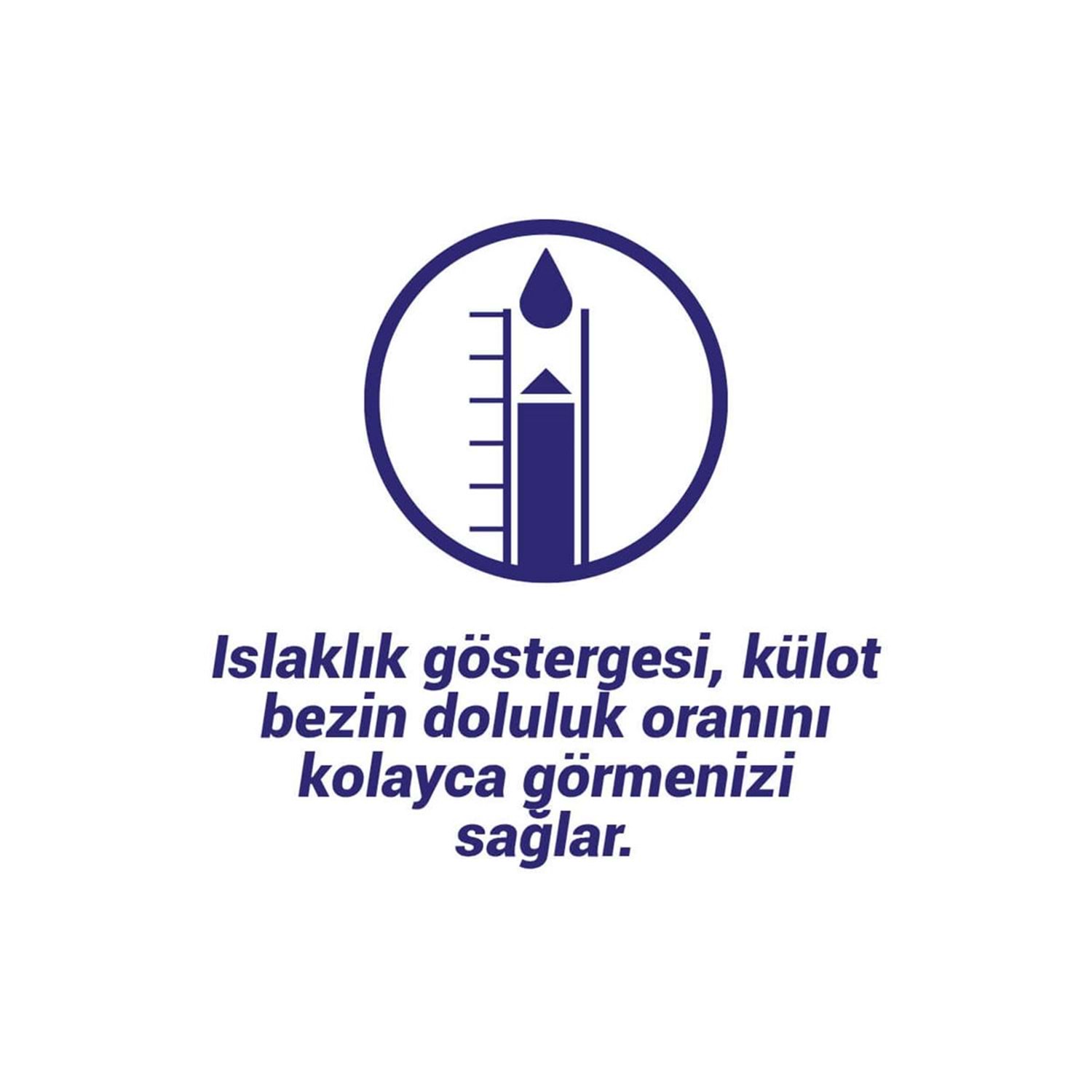 Islaklık göstergesi, külot bezin doluluk oranını kolayca görmenizi sağlar.
