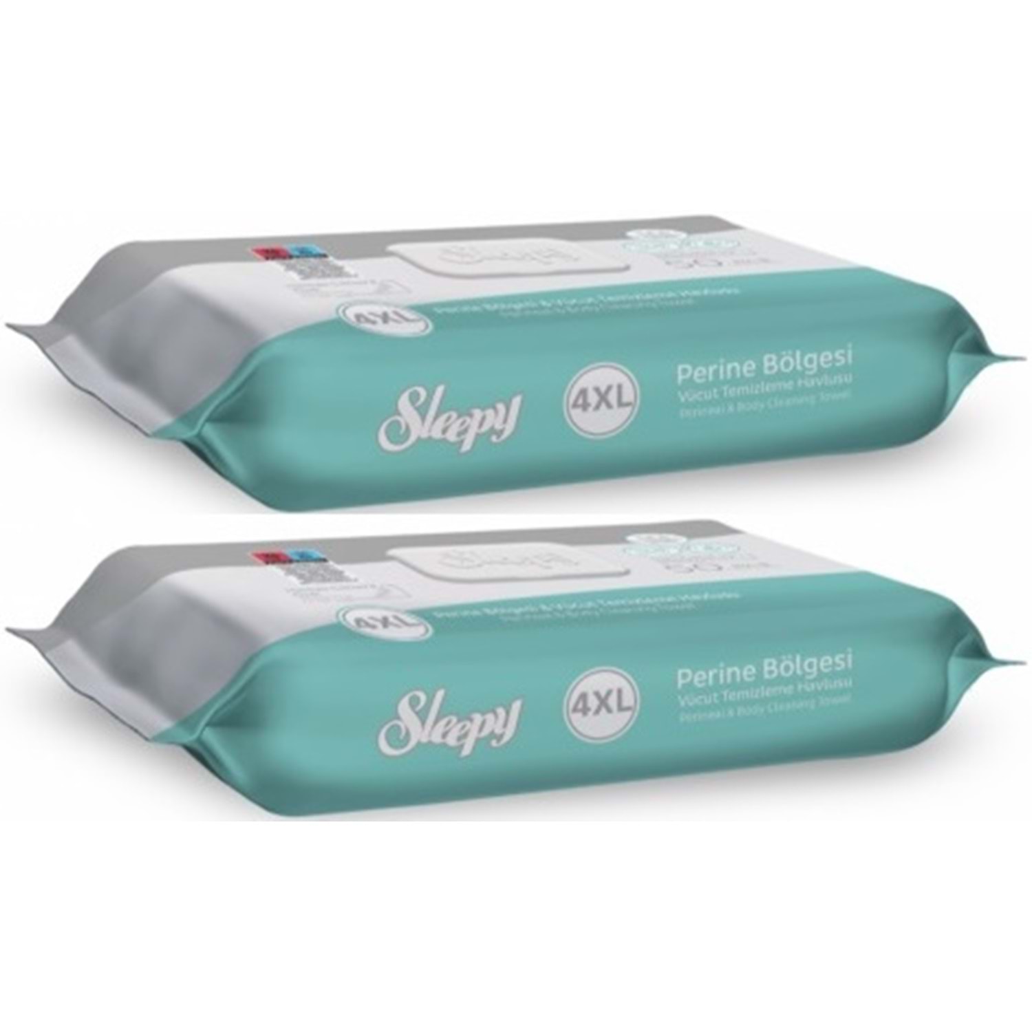 Sleepy Perine Bölgesi ve Vücut Temizleme Islak Mendil Havlu 50 Yaprak (Ebat 4XL) (2 Li Set)
