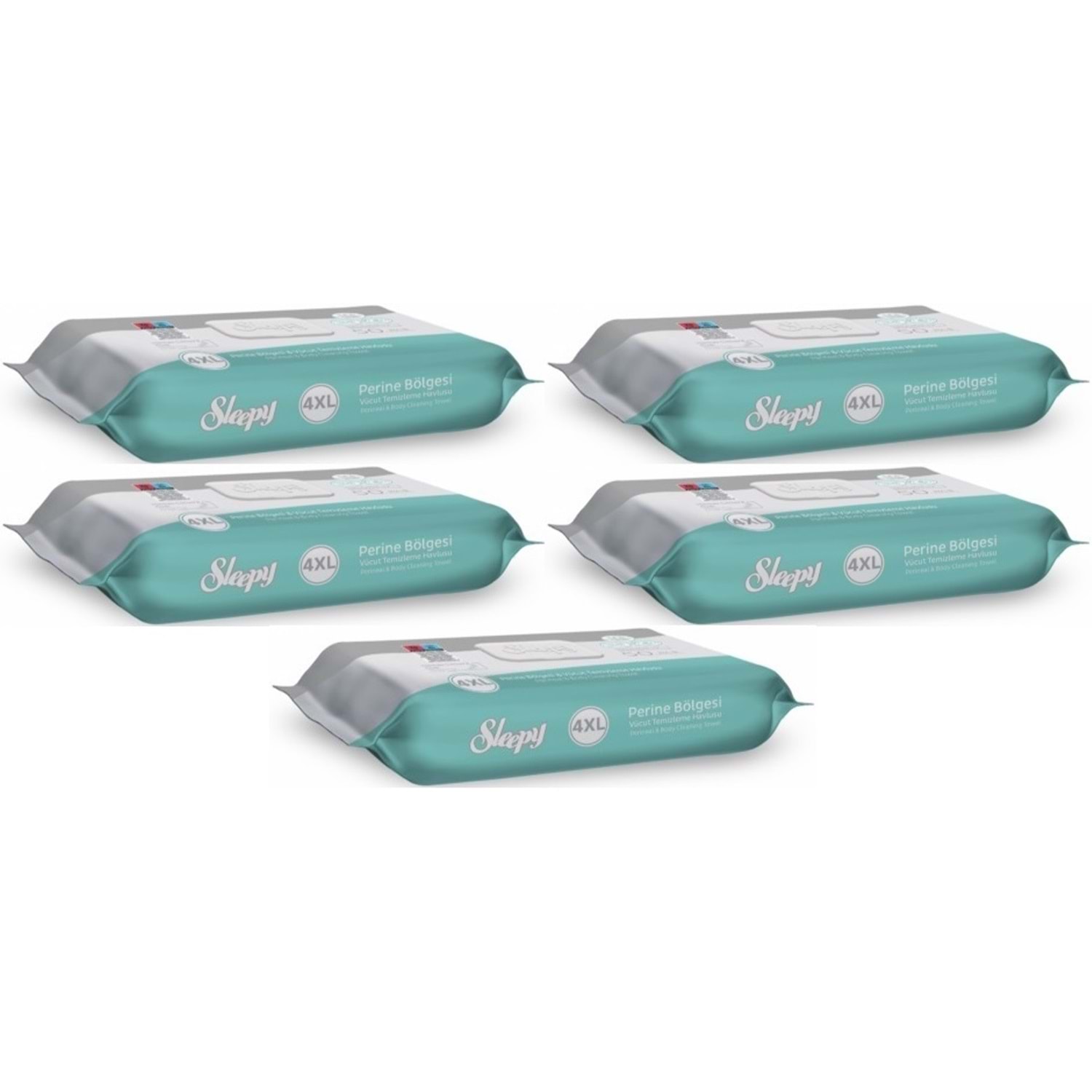 Sleepy Perine Bölgesi ve Vücut Temizleme Islak Mendil Havlu 50 Yaprak (Ebat 4XL) (5 Li Set)
