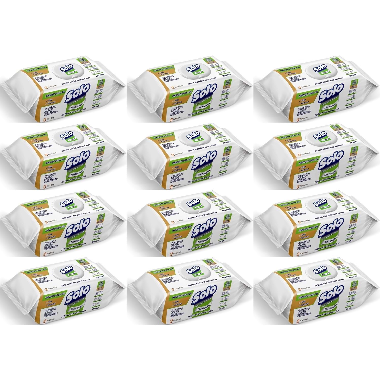Solo Yüzey Temizlik Havlusu - Mendili 100 Yaprak Beyaz Sabun Ferahlığı (12 Li Set) 1200 Yaprak